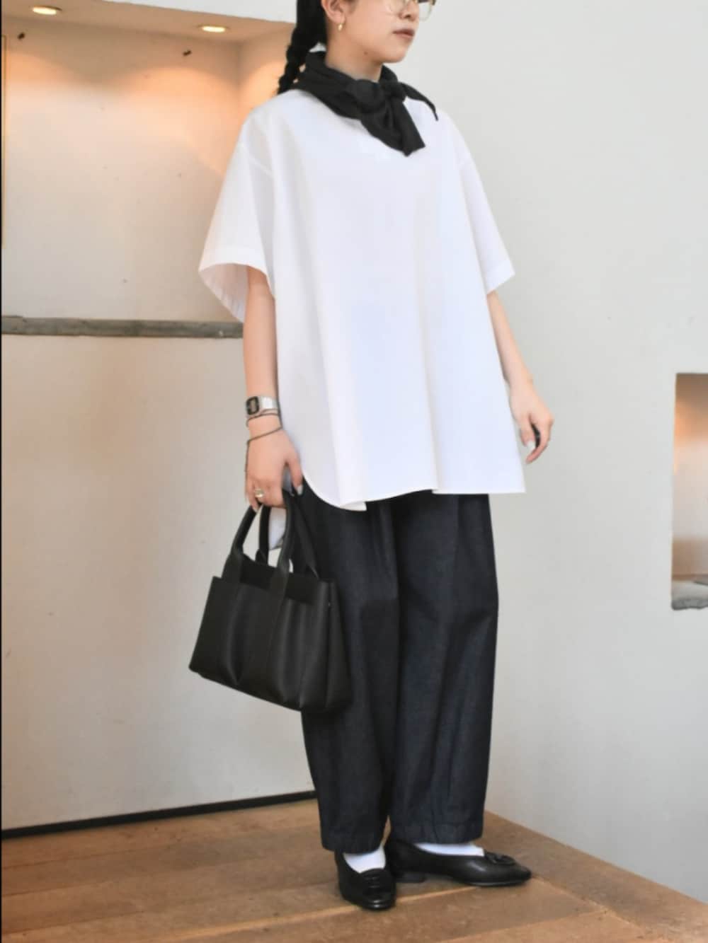 ハリ感のある高密度なコットン地は、上品でカジュアルすぎない印象です。