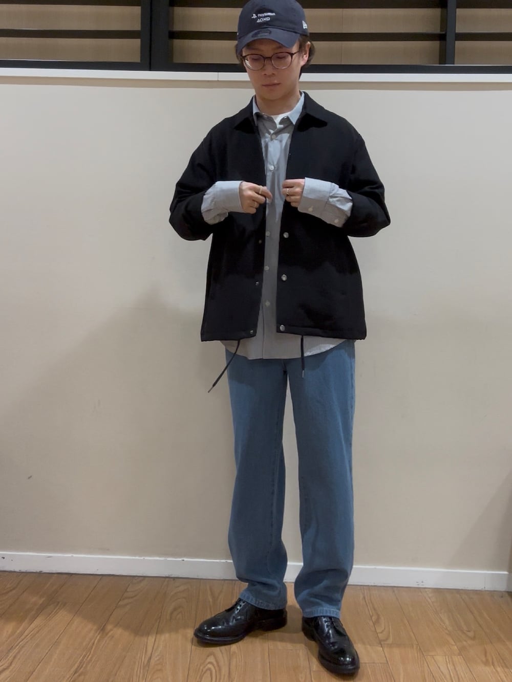 コーチジャケット、袖にボタンがあり気温調節しやすく、袖を捲ることでこなれ感も出る、そんなコーディネートです!!