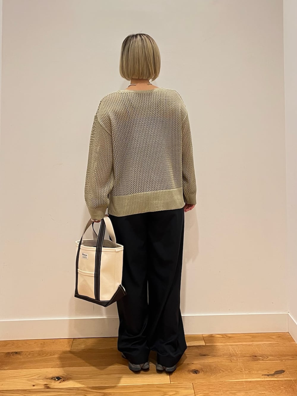 肩からのなだらかな落ち感と身幅をとったルーズなシルエットが、こなれたリラクシングな雰囲気を演出します。