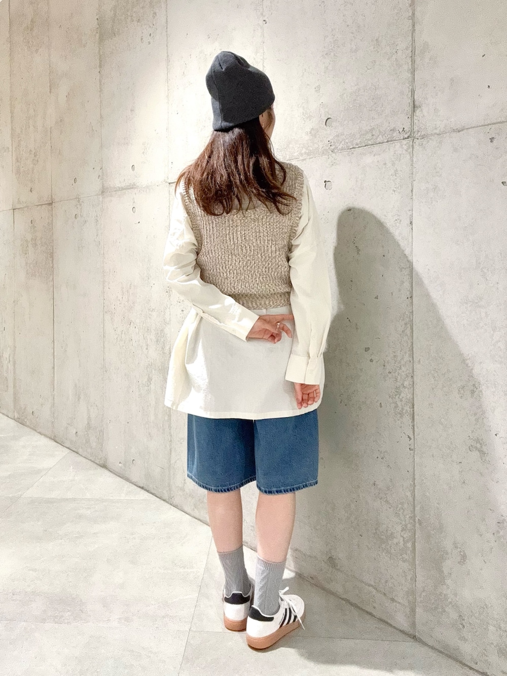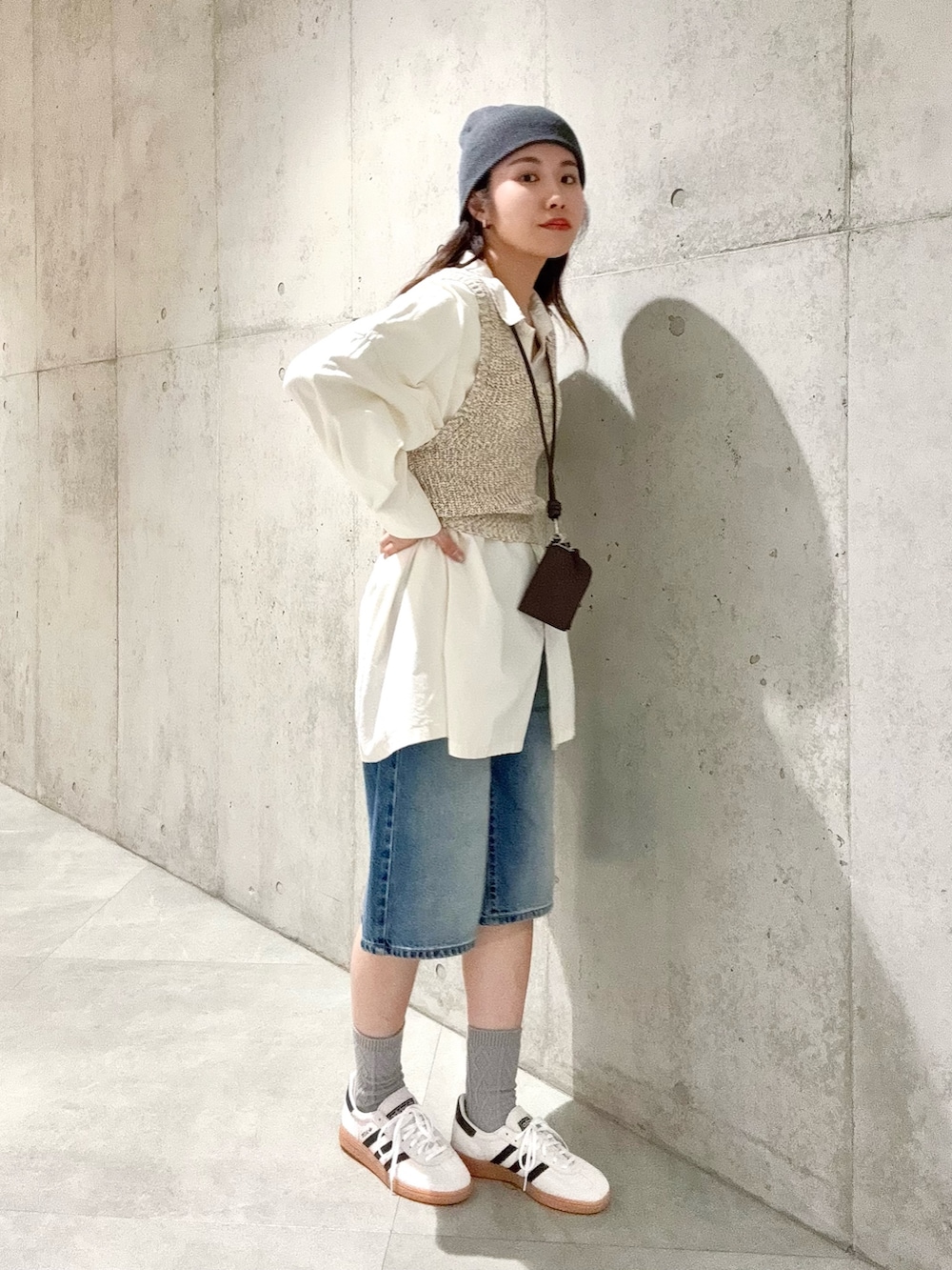 ビッグシャンブレーシャツと合わせれば、ハーフパンツの面積がちょうど良くなってバランス◎