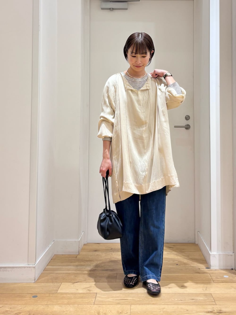 首元には紐が付いているので、結んでポイントにしても可愛いですよ♪