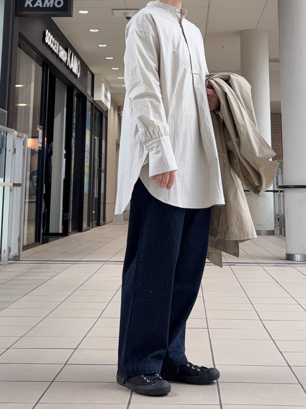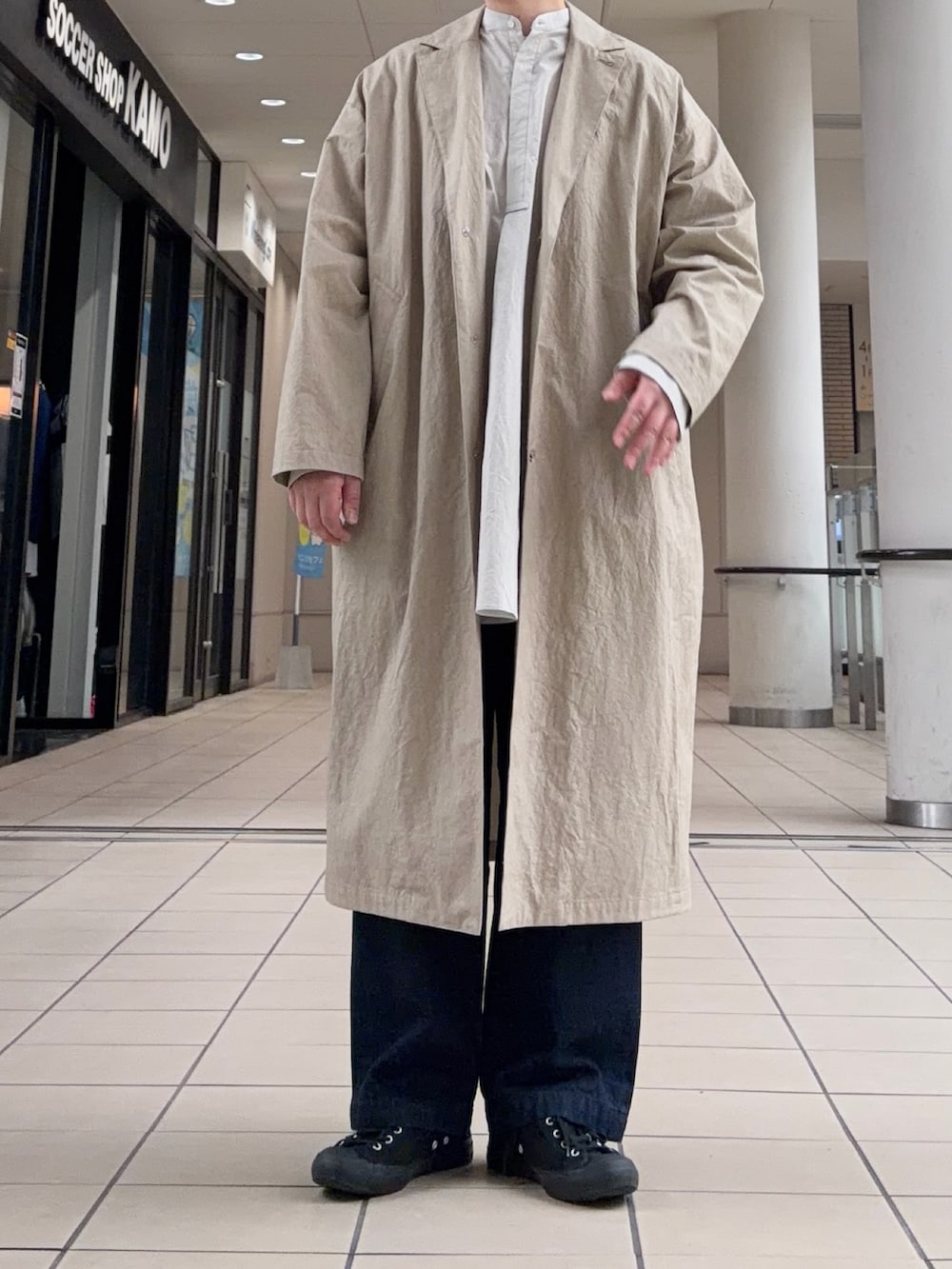 ロングコートを羽織ると雰囲気のある装いに。