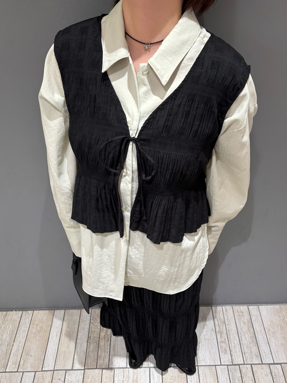 スカートは足のラインを拾わず履いていただけ、トップスはベストなので春はシャツや薄手の長袖カットソー合わせで、夏は半袖やタンクトップと合わせてもらえばロングスパンで着ていただけますദ്ദി ῀ᢦ῀ )
