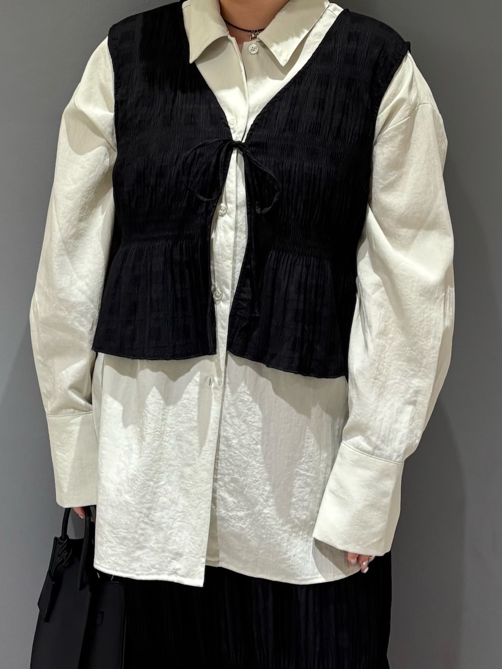 着てみた感じ、オーバーサイズが苦手な骨格ストレートの私でもスッキリ着れました!生地に落ち感があるので上半身の厚みを拾わないところが推しポイント🫶🏻1番上のボタンを開けて着ると更にスッキリ見えますし、こなれ感も出るのでオススメの着方です!!