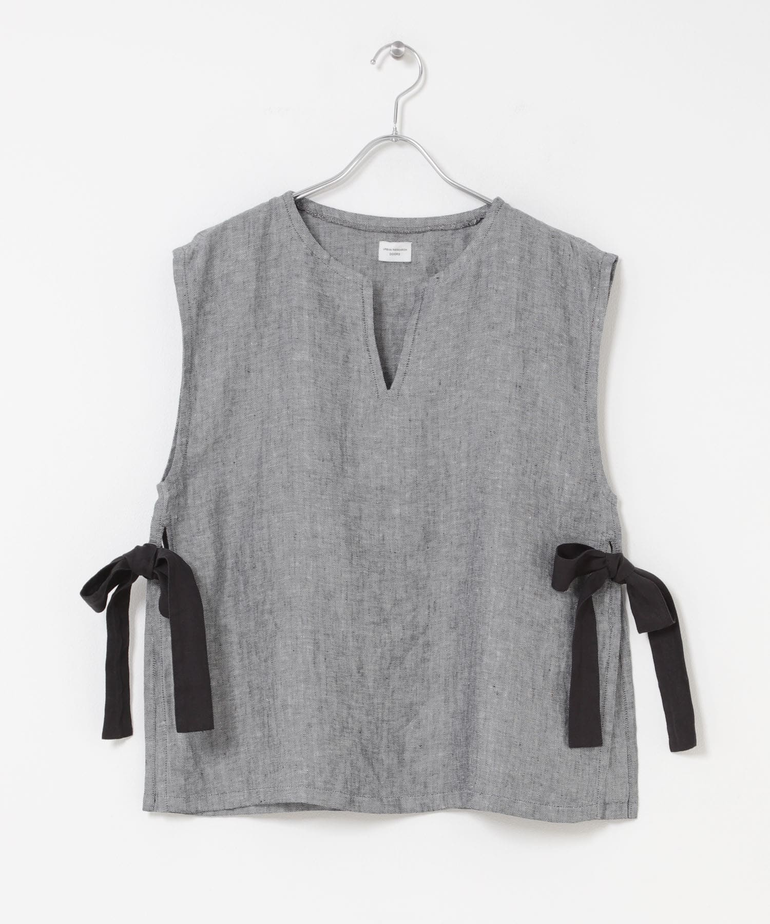 ヘリンボーンリネンサイドリボンベスト