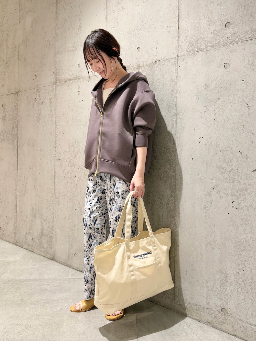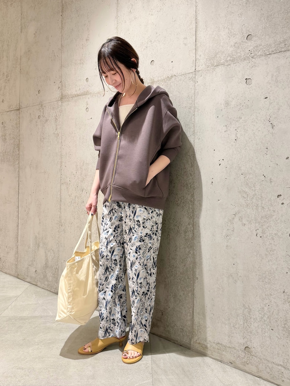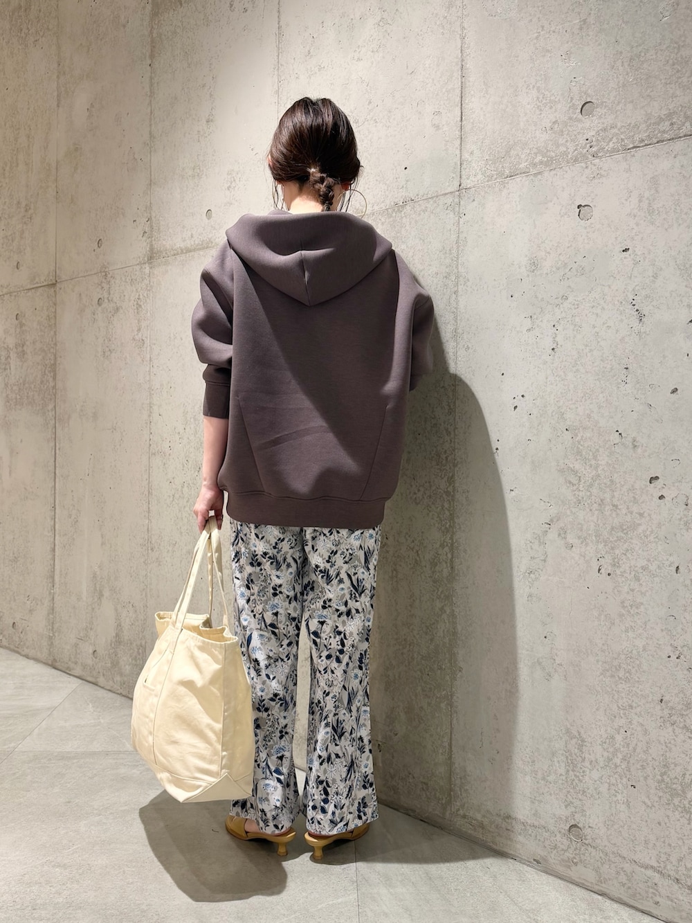 今回は、春らしい花柄が着映えするパンツを合わせた、大人カジュアルコーディネートです。