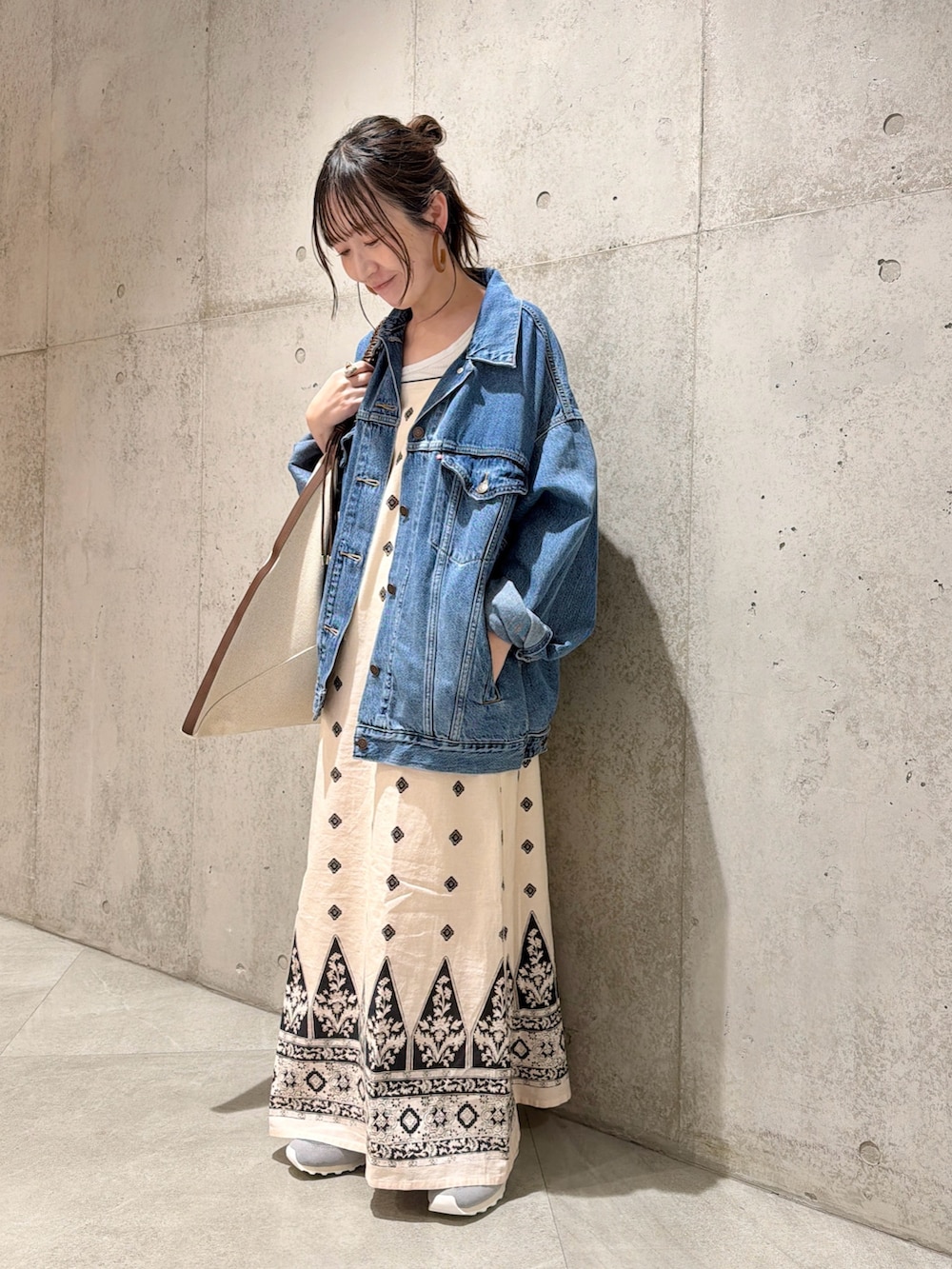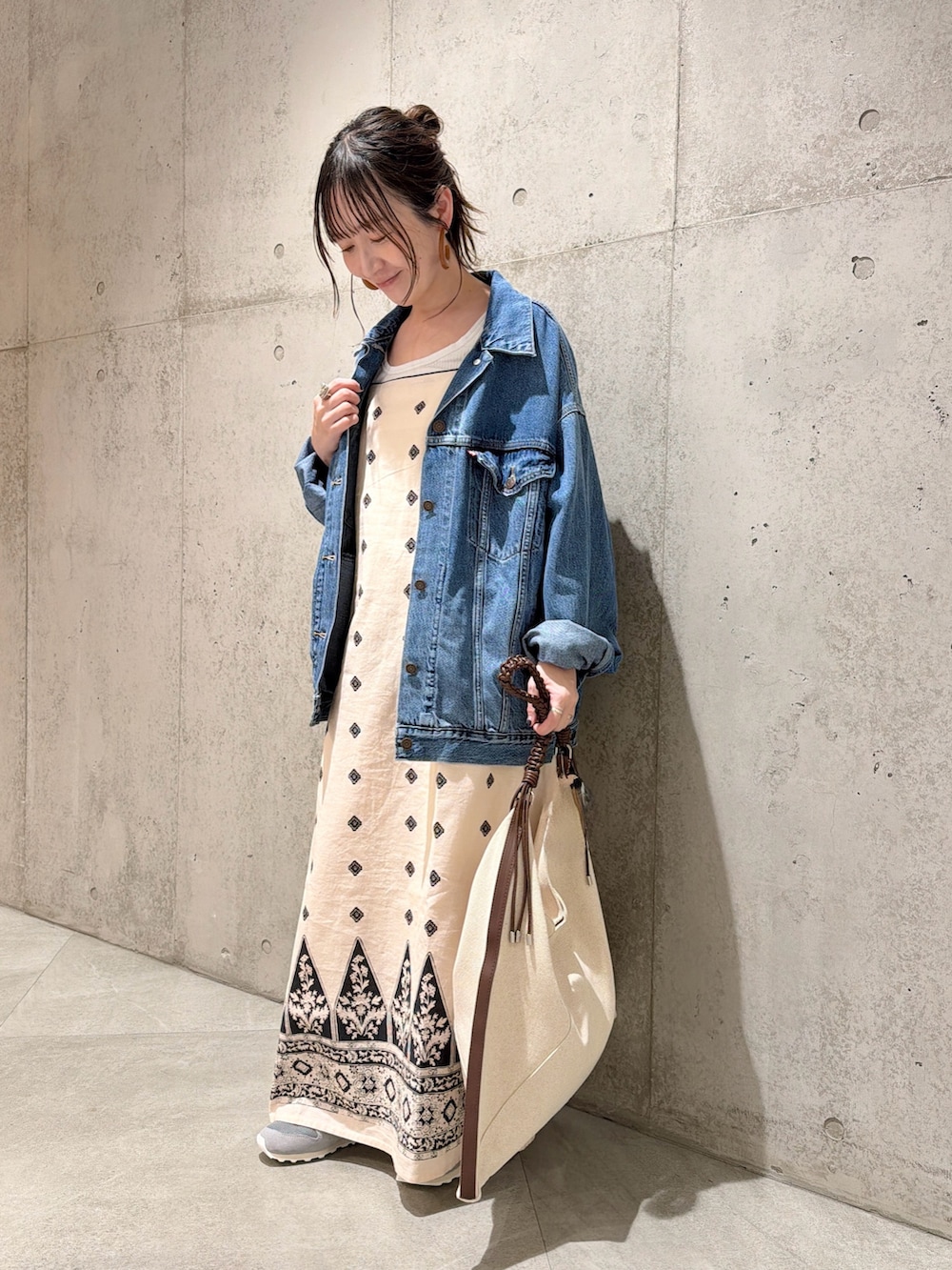 ワンピースは、ゆとりのあるストレートシルエットで、オリエンタルな柄がこなれ感のあるアイテム。