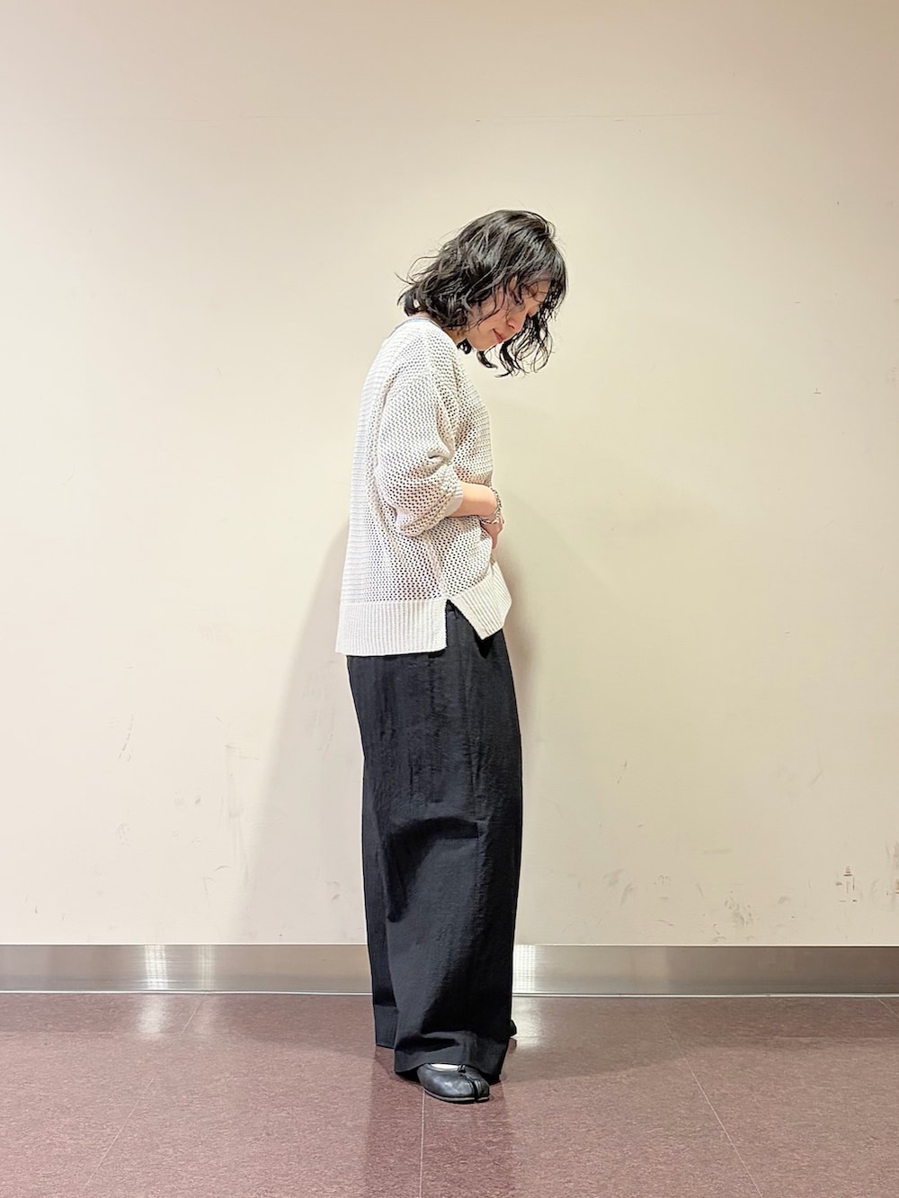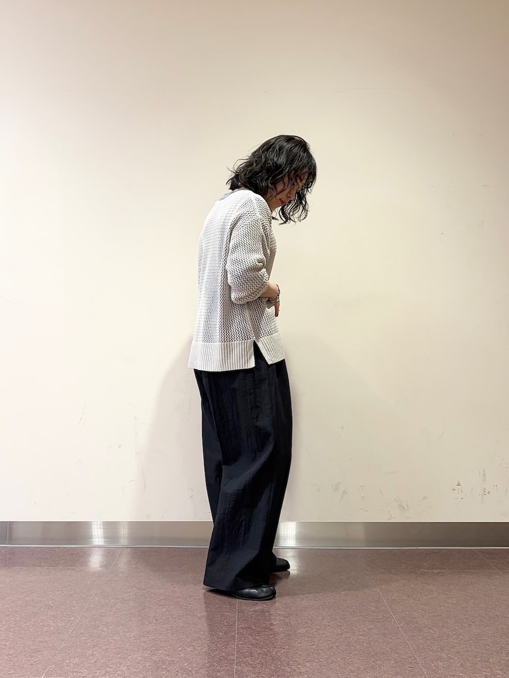 メッシュとタックパンツ