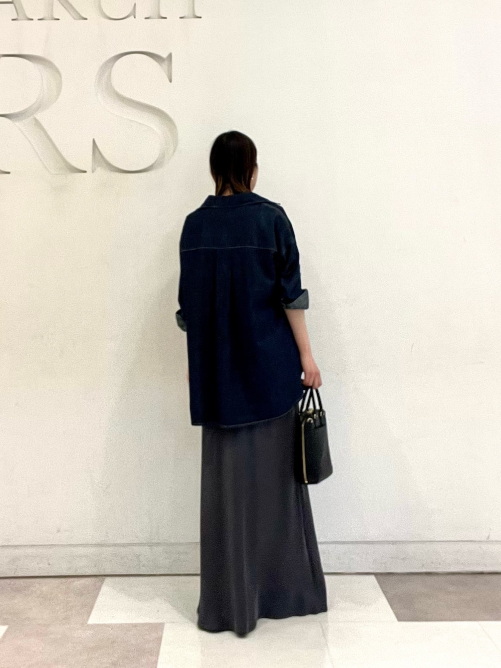 LEE別注のデニムシャツはしっかりとした生地感でアウターのような存在感◎ヒップがしっかりと隠れる長さに安心感があります!1枚で着るのはもちろん、羽織りとしても活躍するのでロングシーズン出番のあるアイテムです◎