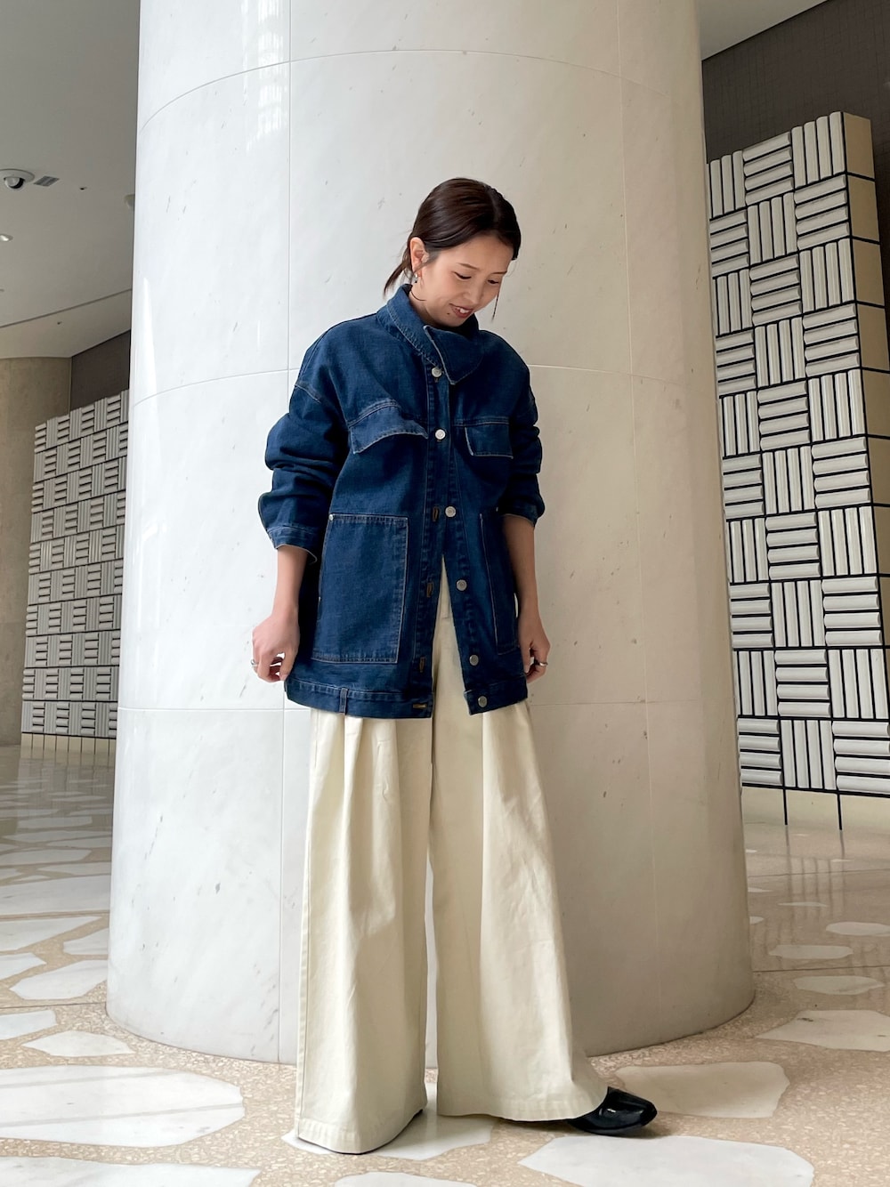 ベルトで長さ調整も可能で、少し落としめに着ると甘くなりすぎず着用いただけますよ!