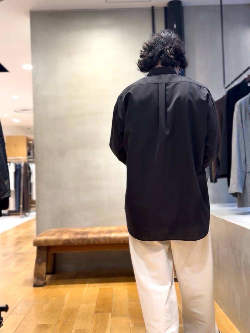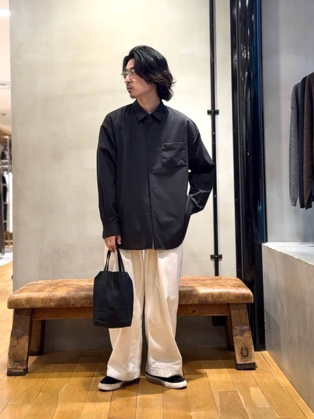 オーバーサイズのシャツにオーバーサイズのパンツで、モノトーンで。