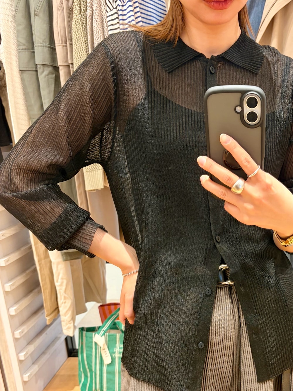 EKALシースルーリブニットカーディガン- カラー: