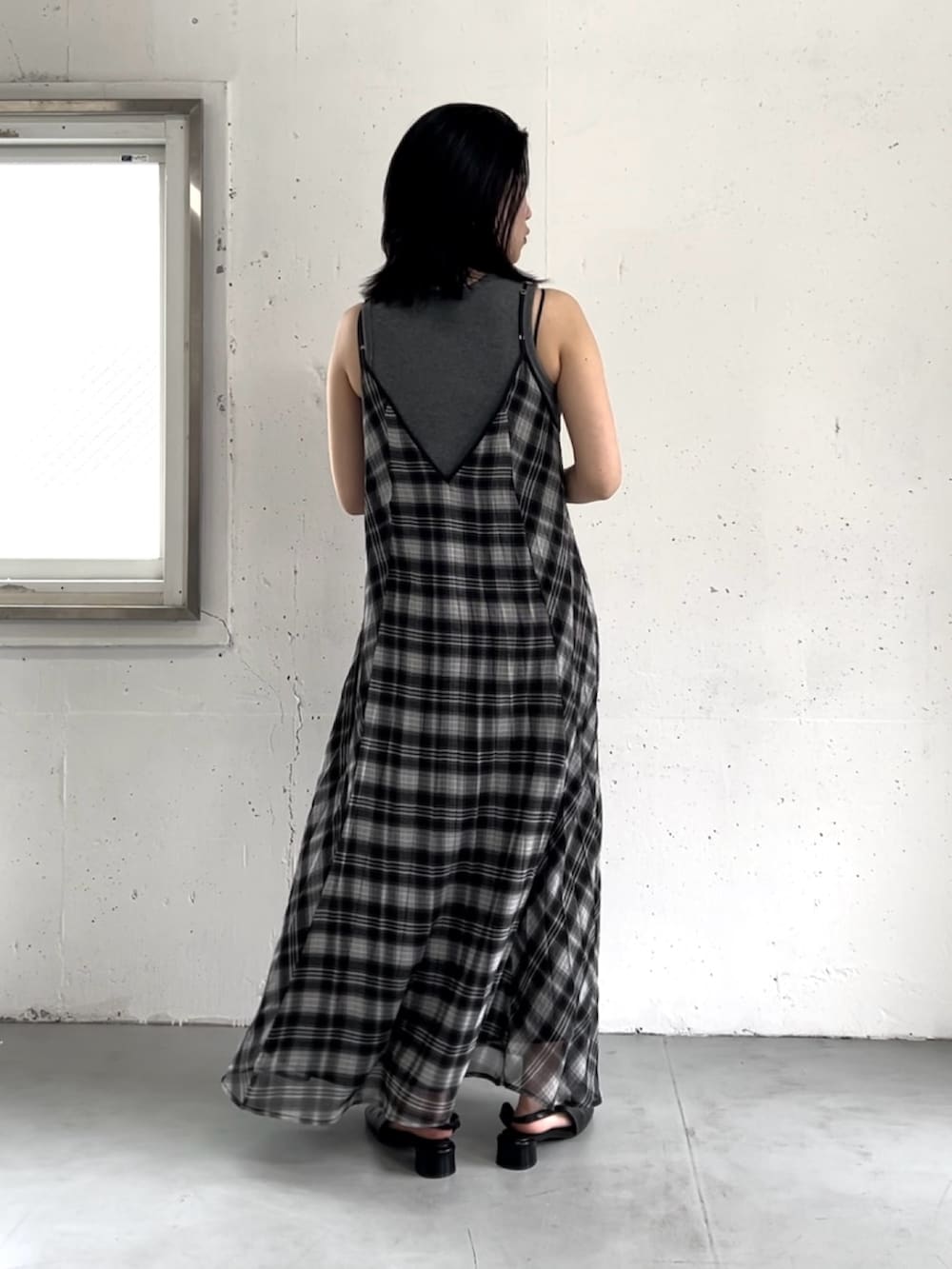 チェックプリーツキャミワンピース
