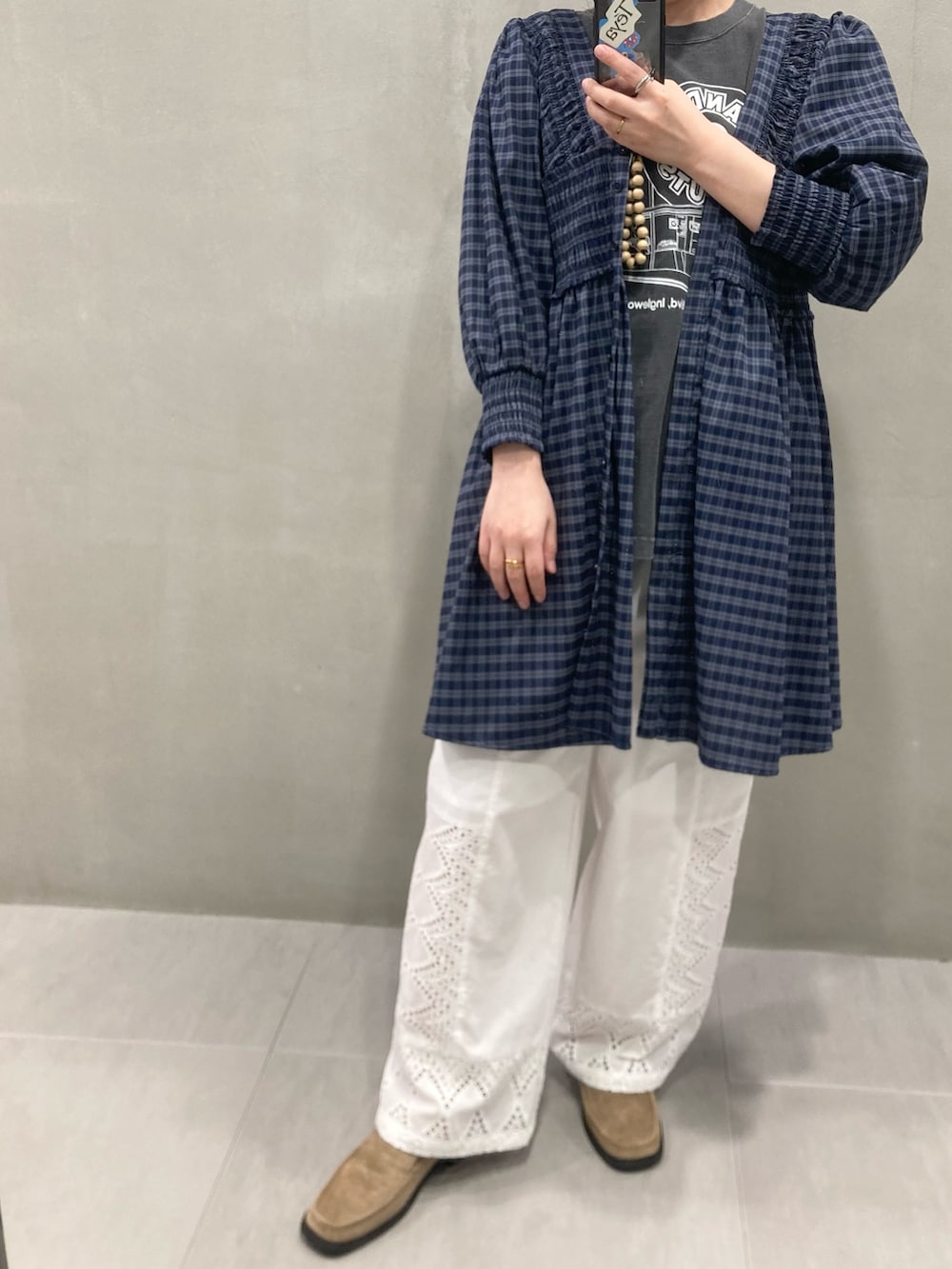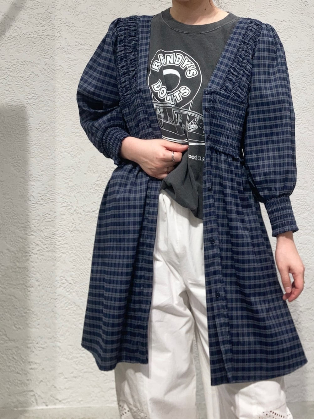 KBF2WAYシャーリングチェックミニワンピース- 着用カラー: