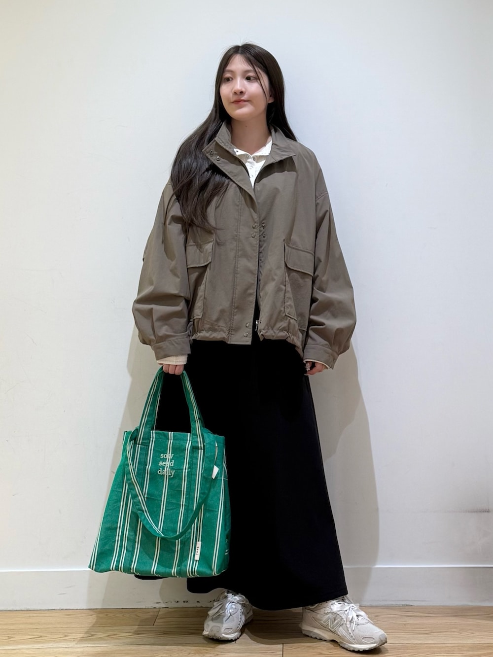 撥水/防花粉スタンドブルゾンは、ショート丈なのでバランスが取りやすくパンツでもスカートでも合わせやすくてかわいいです!