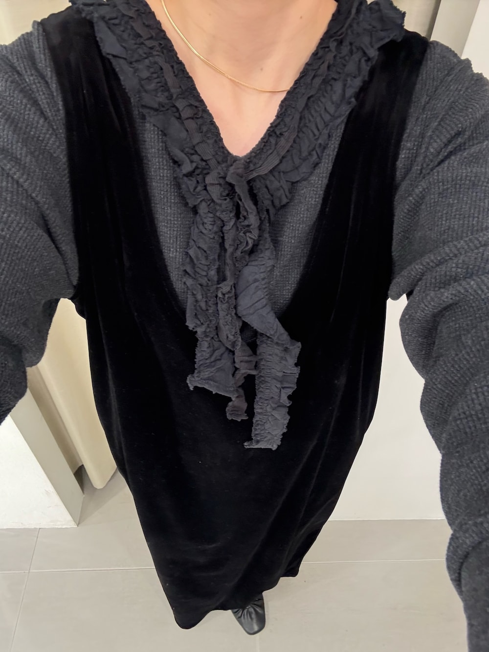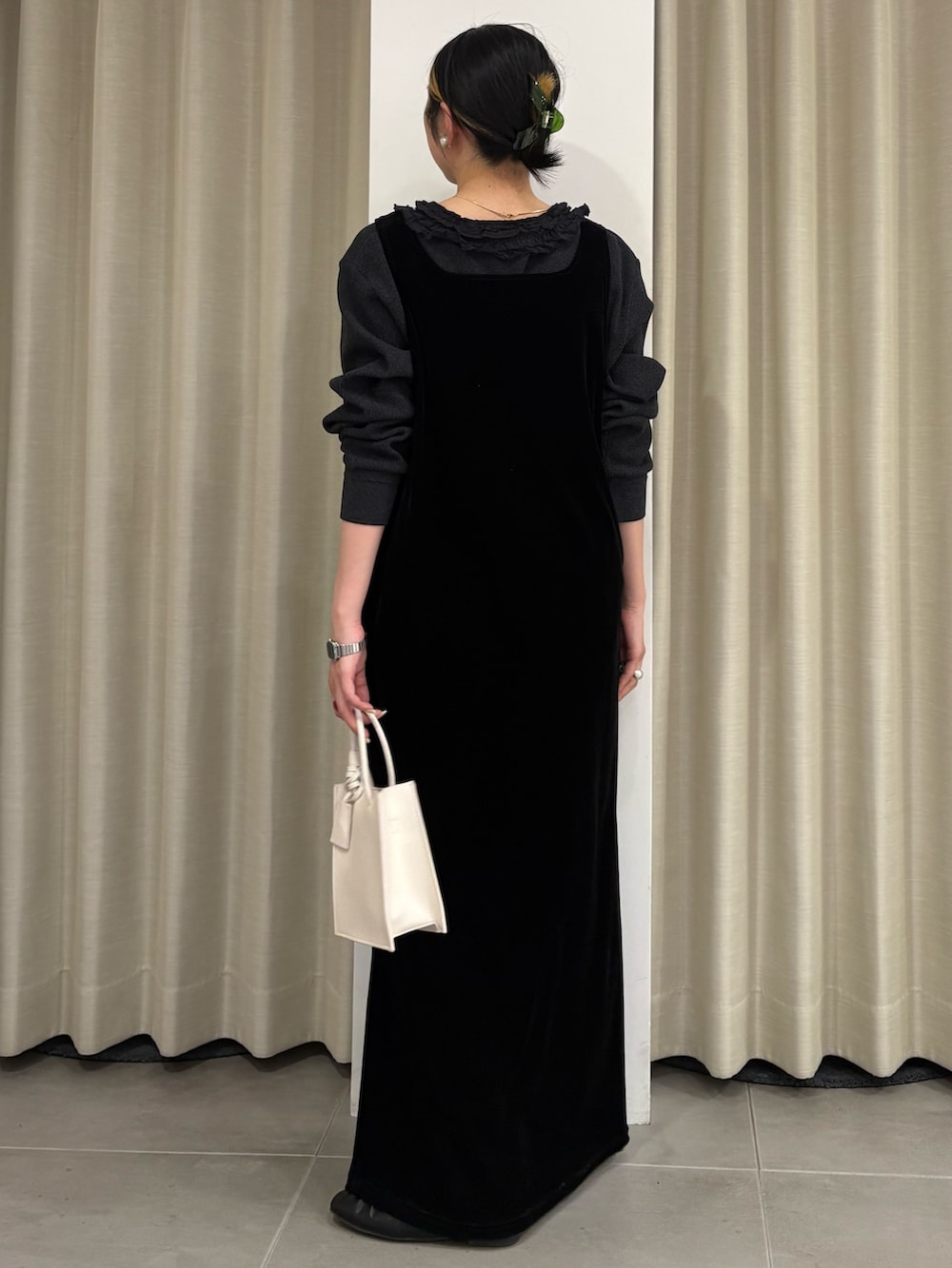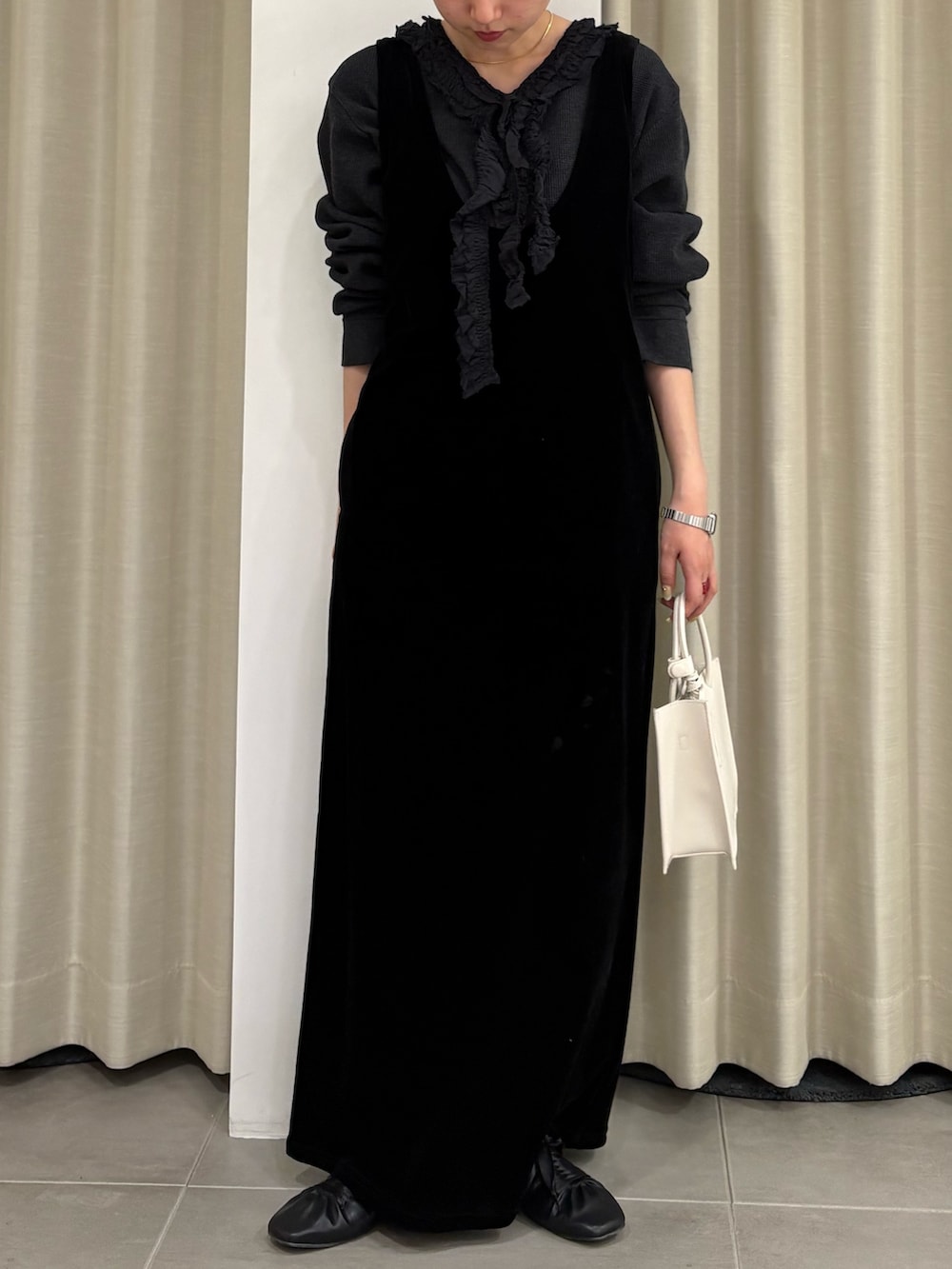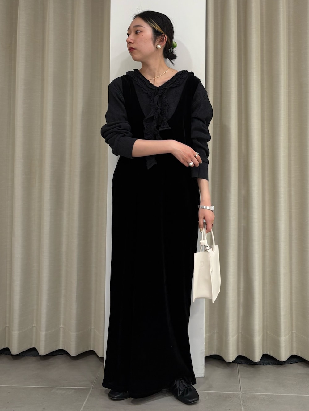 ベロアのワンピースを使った綺麗めコーデを組んでみました!