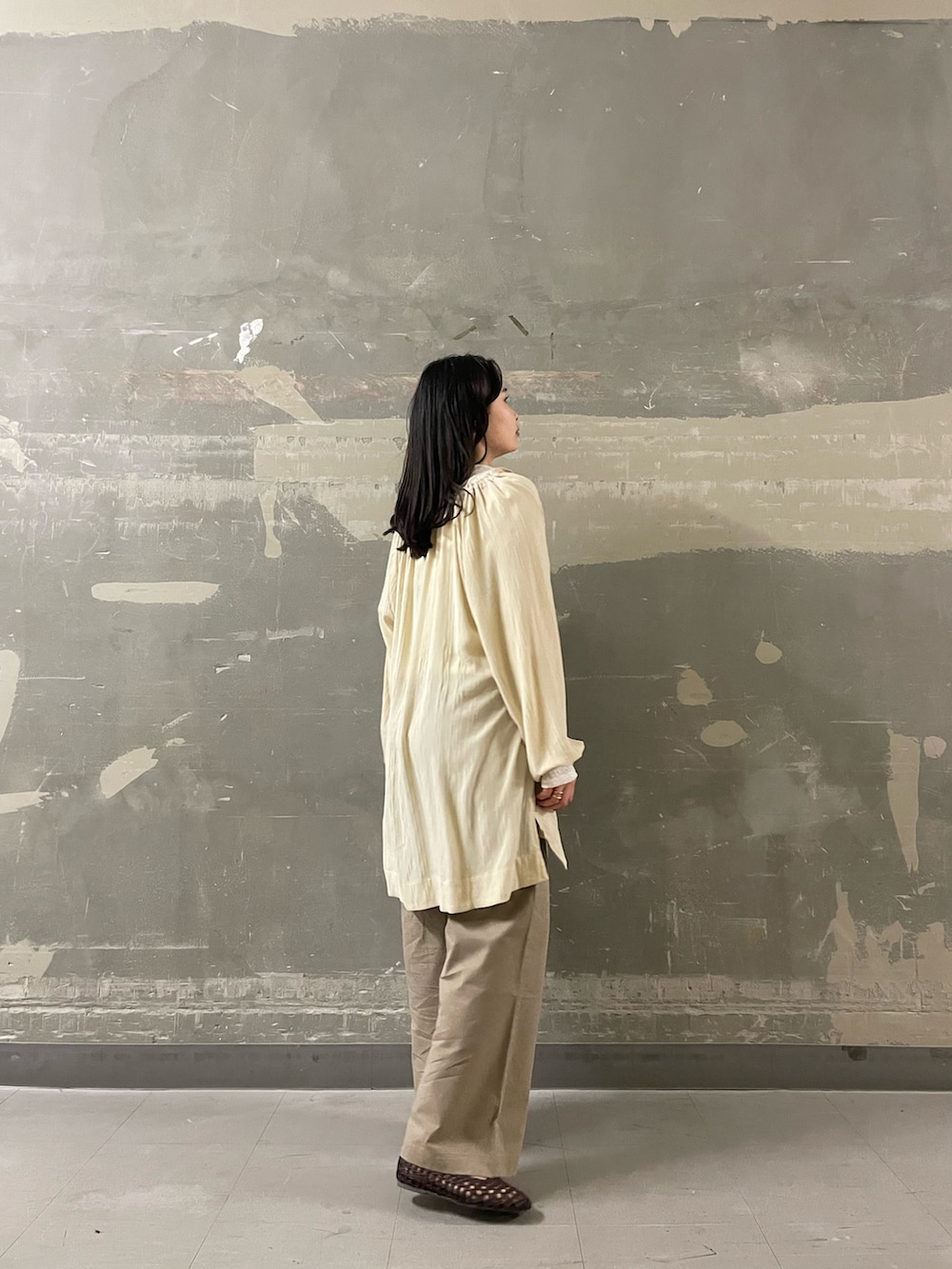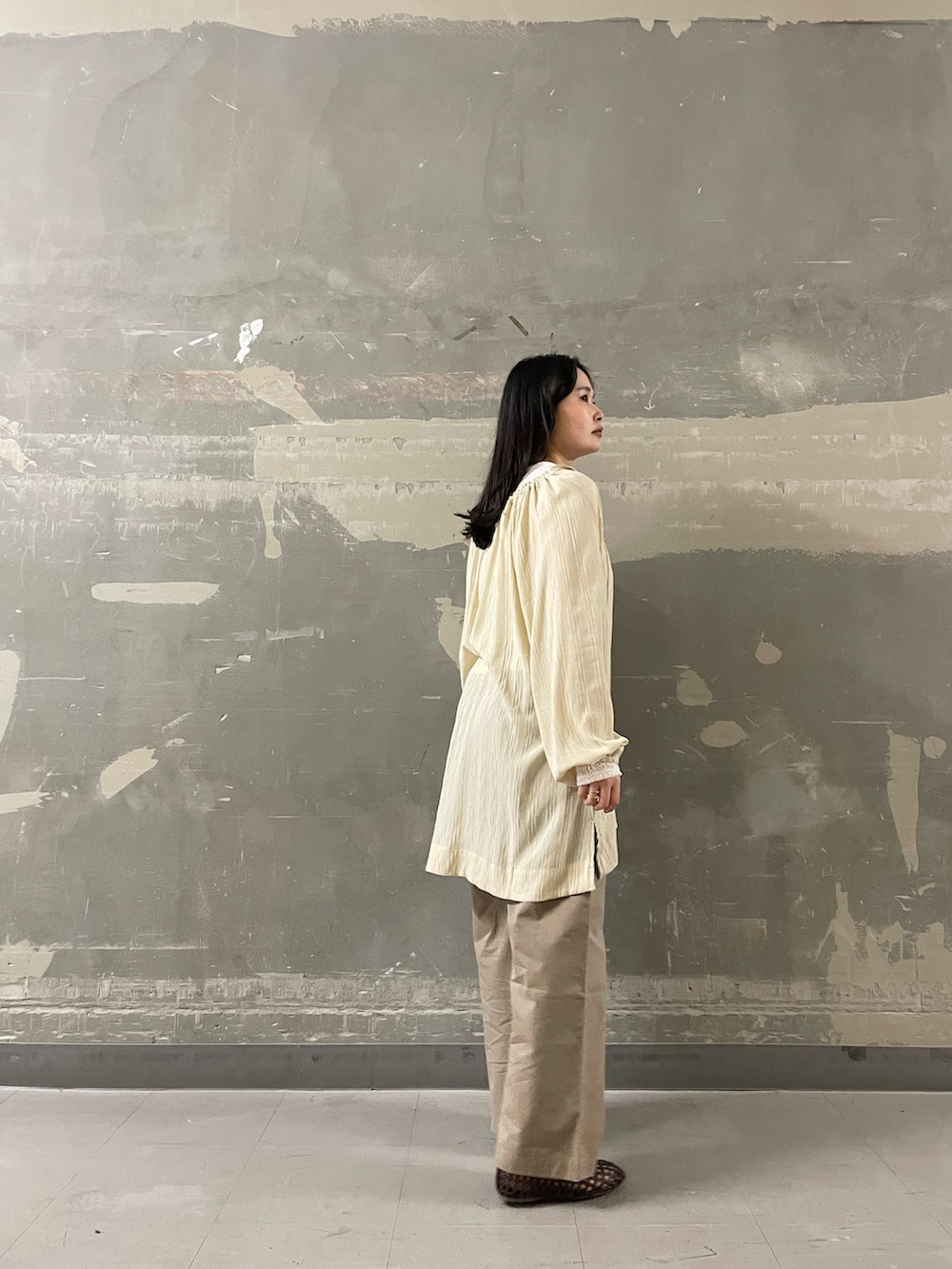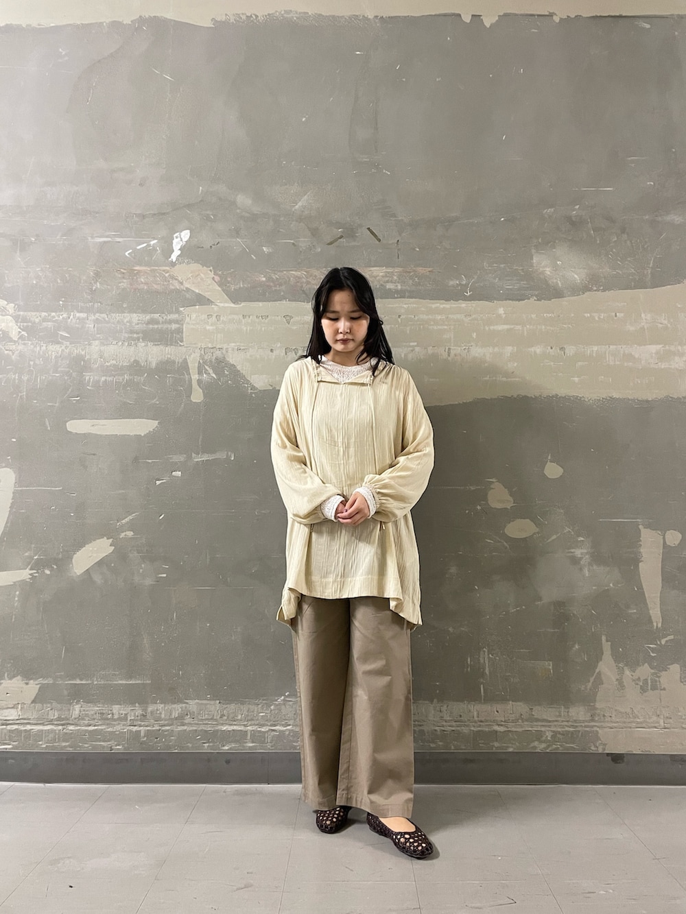 ワイドパンツを合わせることで、抜け感のあるバランスに仕上げました。