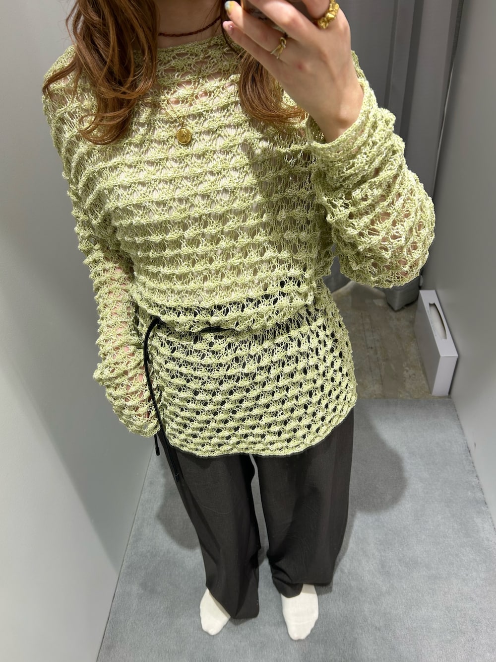 ベルトはスラックスとセットアイテムなので上から重ねて着てみました💚