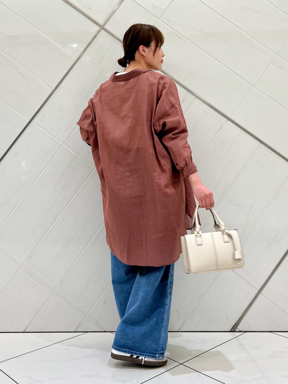 毎年人気のシアーシャツは長めの着丈で