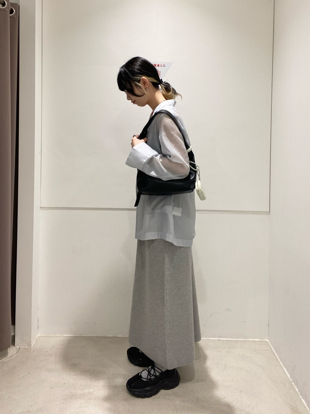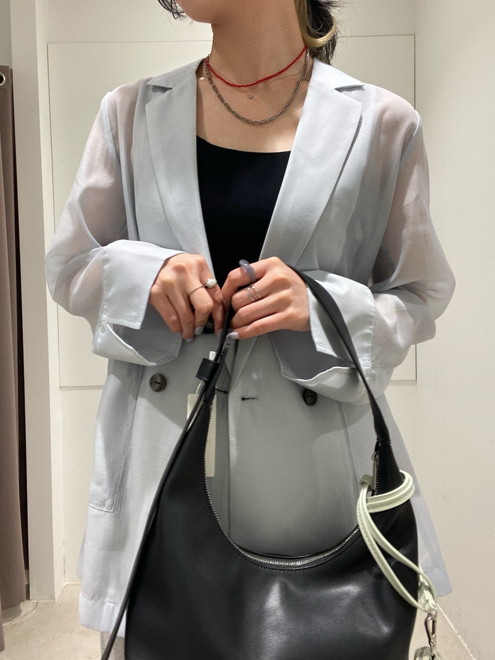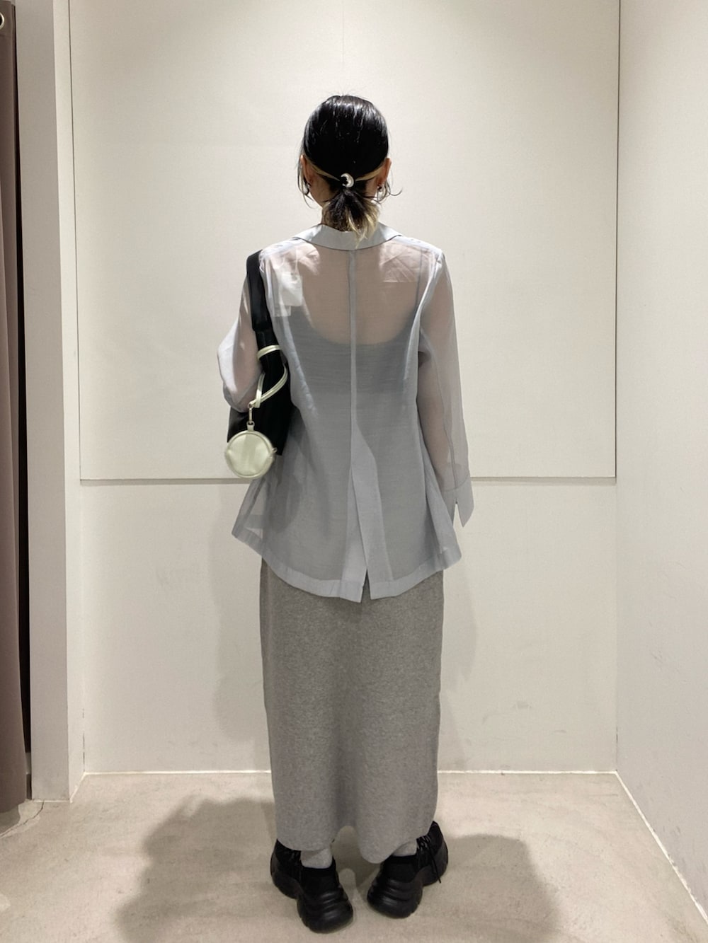 淡いブルーのシアージャケット✖️グレーのスウェットで春らしく明るめのスタイリングです!