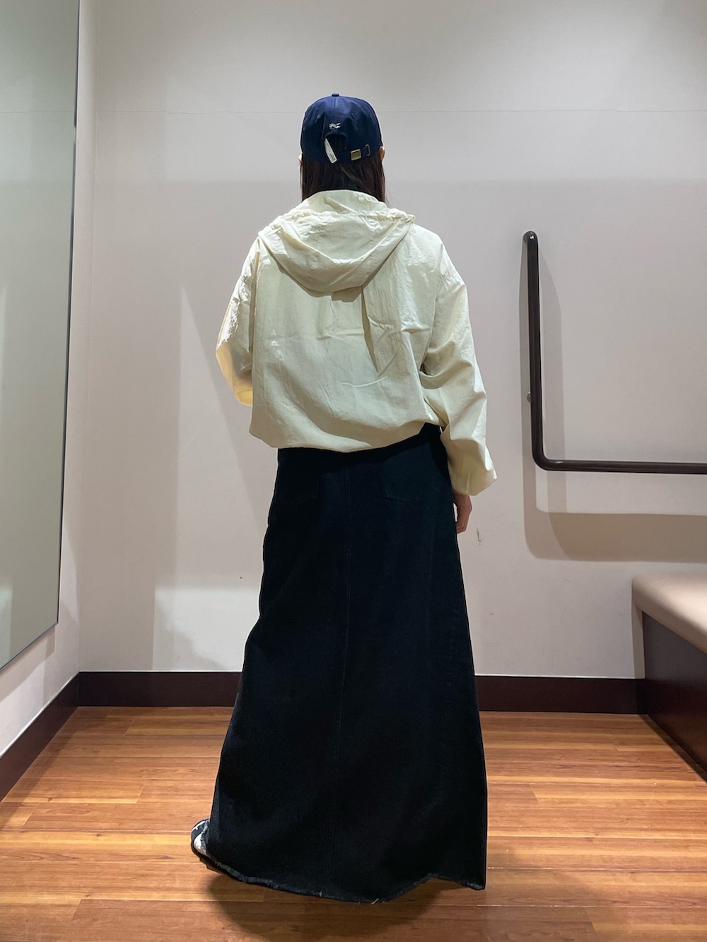 ずるっと履きたい方はちょうどいいかなと思うのですが、床につくのが嫌な方は厚底のスニーカーなどの合わせだとちょうど良いと思います‼︎