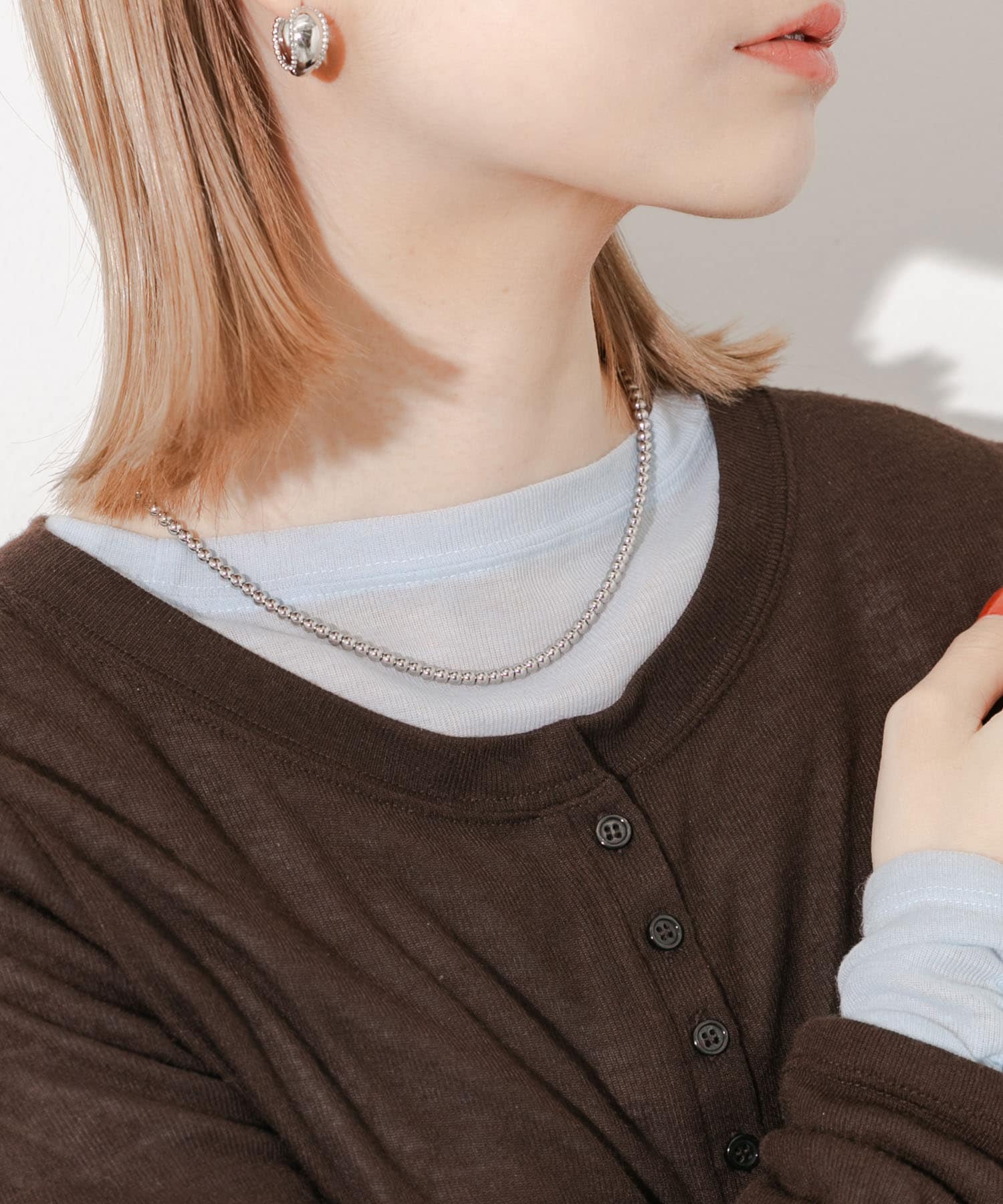 SMELLYステンレスボールチェーンネックレス- 着用カラー: