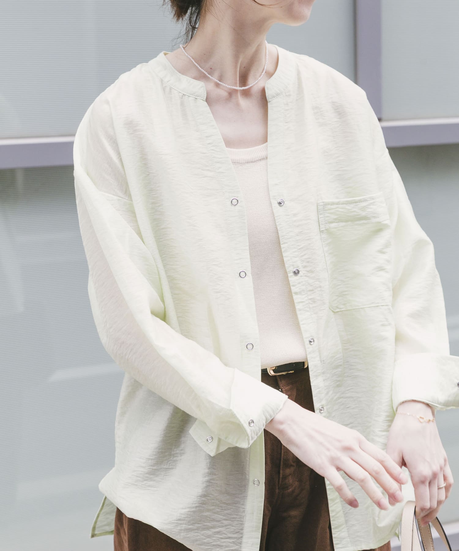 ✔︎首元がVネックになって、ボタンが上まで来ていないので、スッキリした印象になります。
