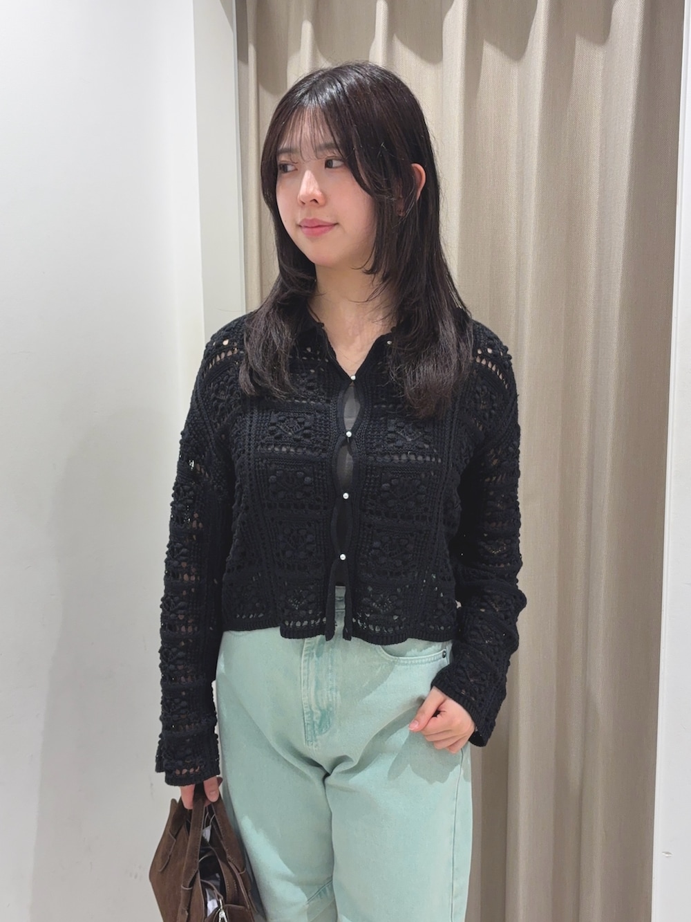 SENSE OF PLACE『洗濯可』レースアミエリツキニットカーディガン- カラー: