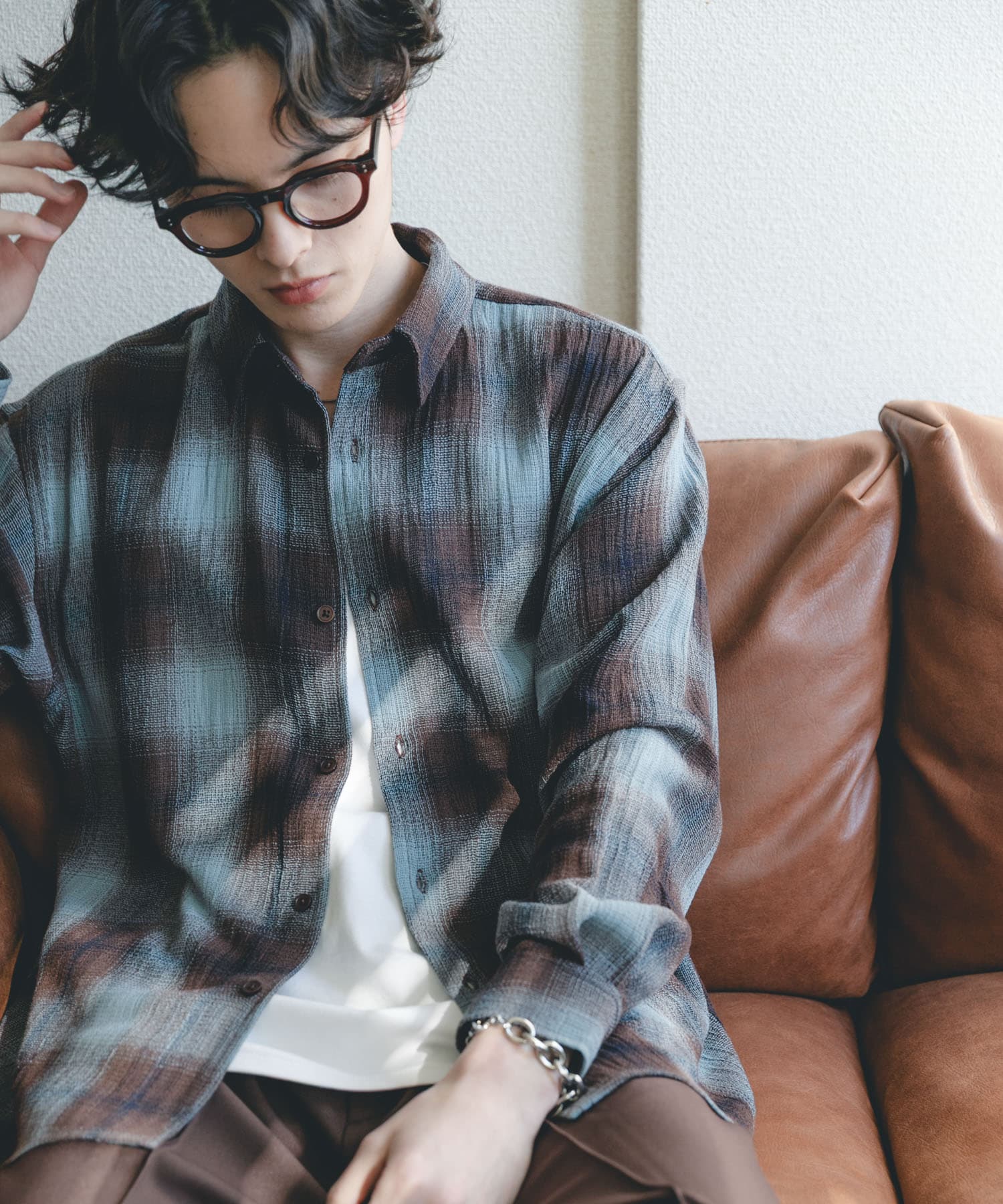 透け感のあるオンブレチェックシャツを使った春夏コーデ!