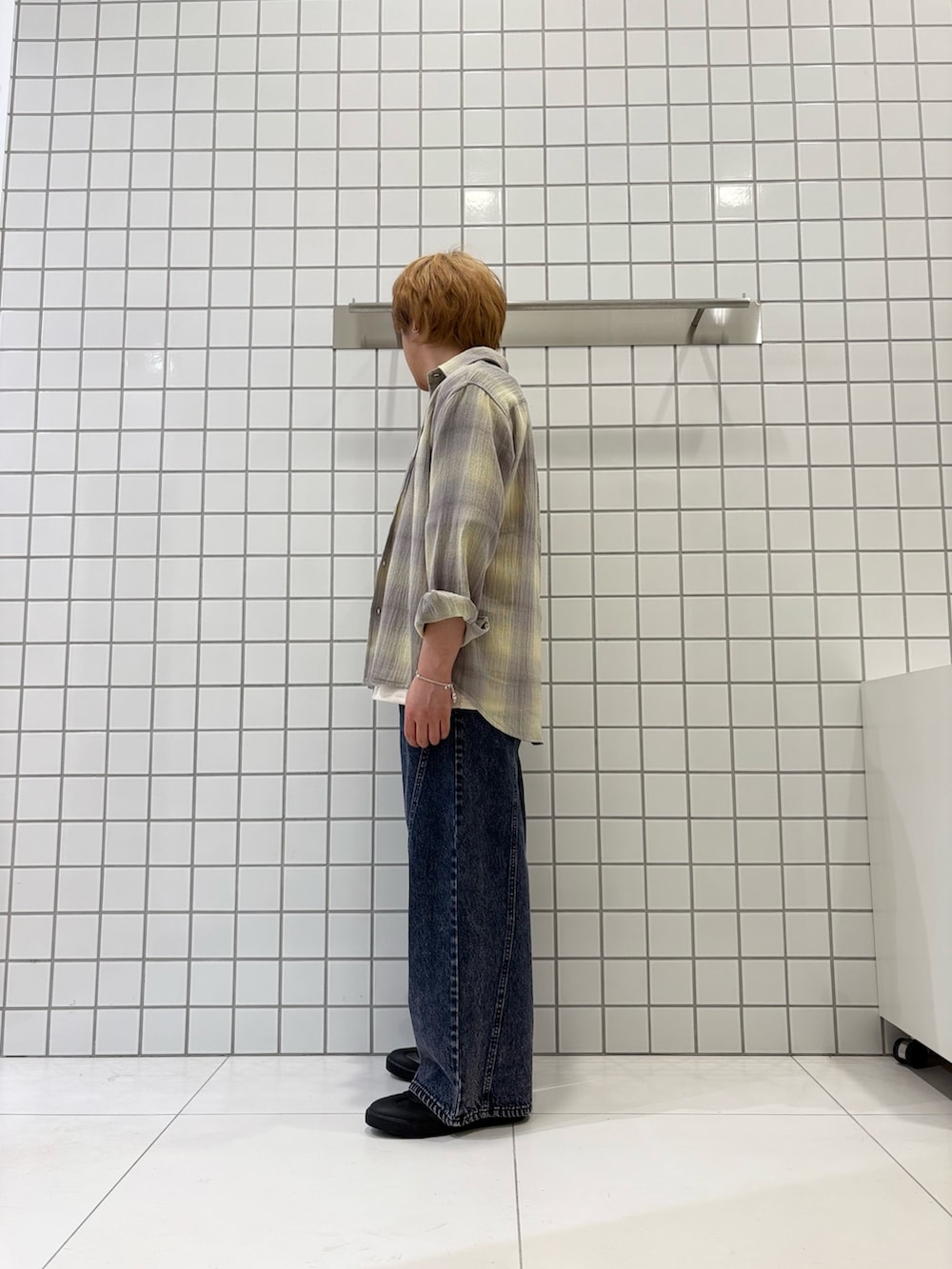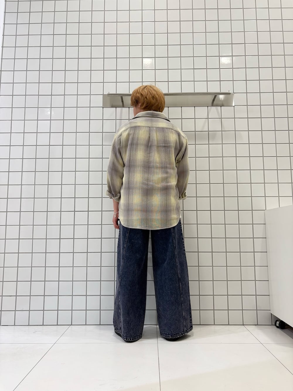 透け感のあるオンブレチェックシャツを使ったコーデ!