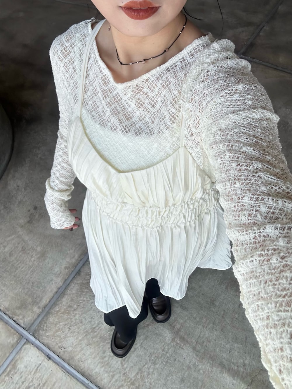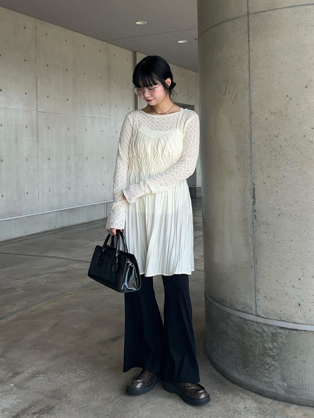 アウターを脱いでも春感が出るように白のレースと合わせて抜け感を出したところもポイントです!👌🏻