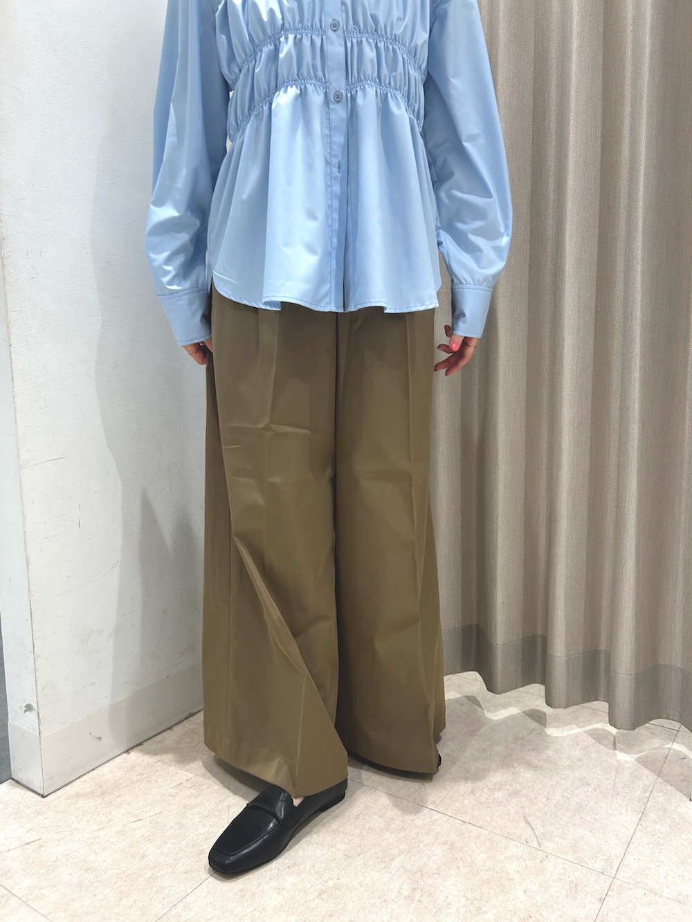 シャーリングのデザインが可愛いシャツ♡