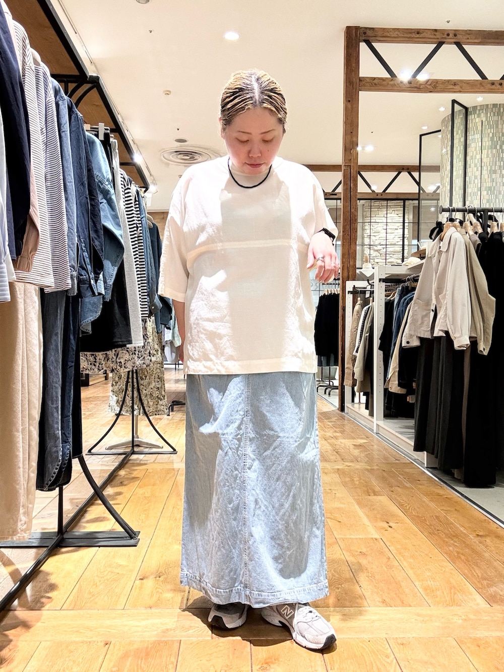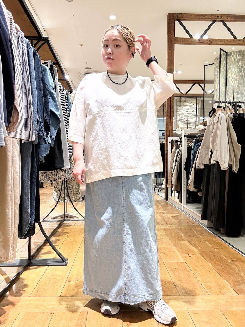 スカートは綿麻デニムのスカートで