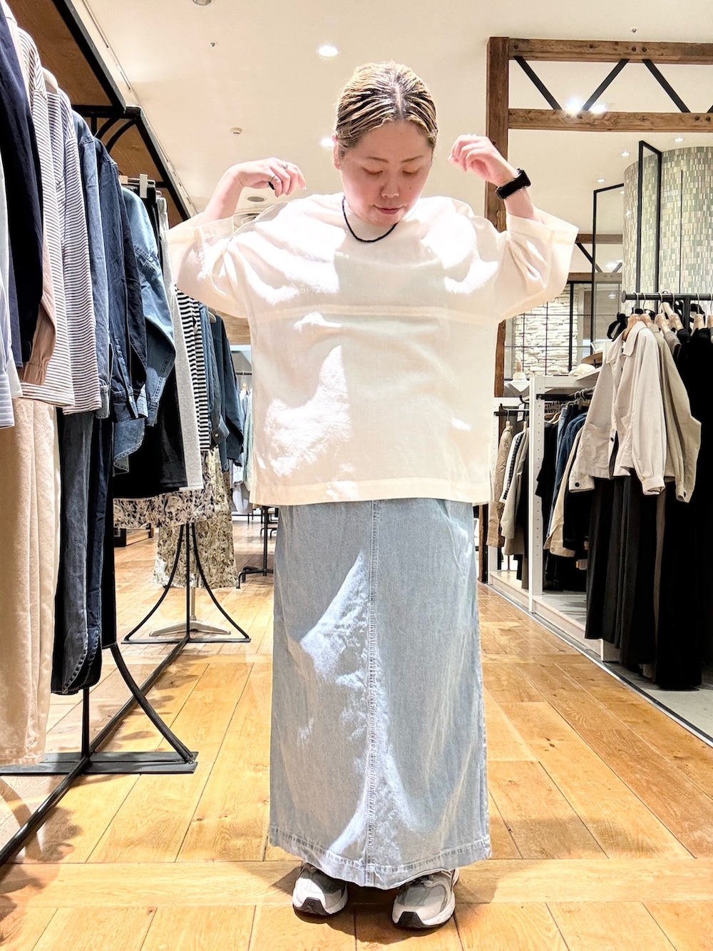ブラウスの生地のためキレイめな印象に✨️