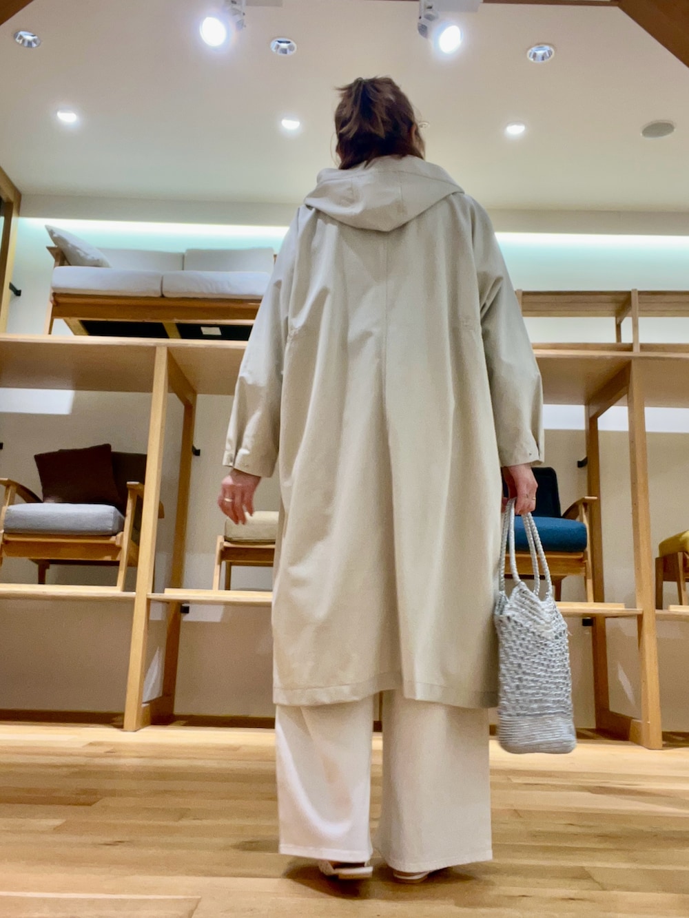 フーディーのコートはオーバーなシルエットでばさっと羽織り様になる一枚です‼︎