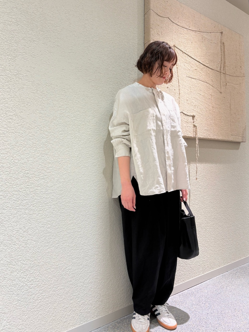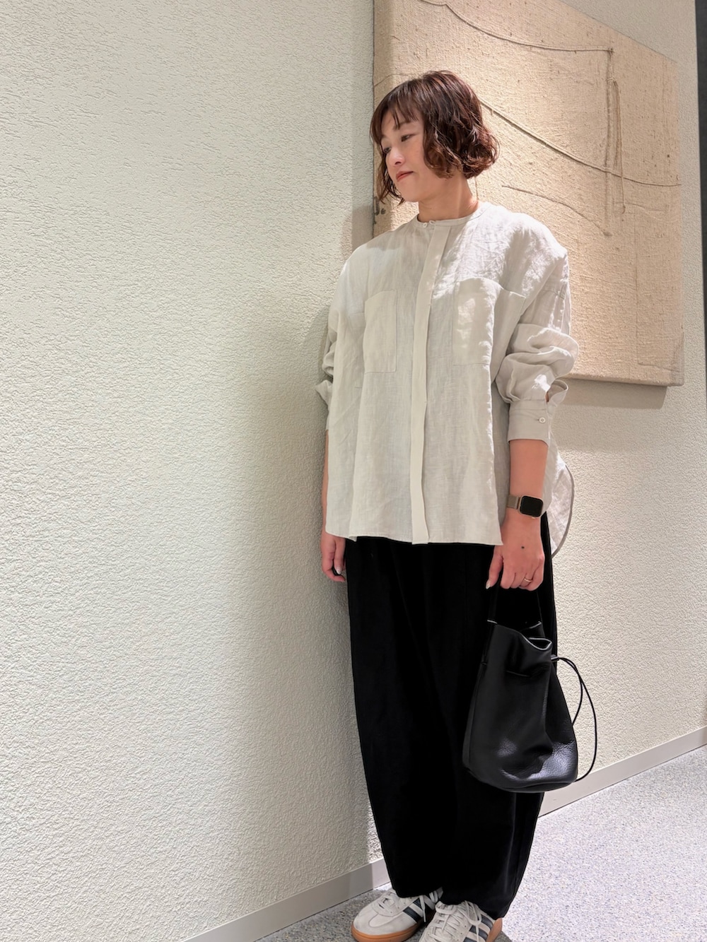 定番のボリュームパンツにコットンリネン素材が入荷しています。