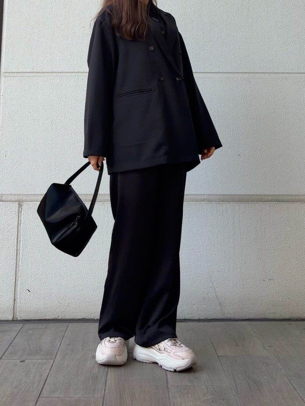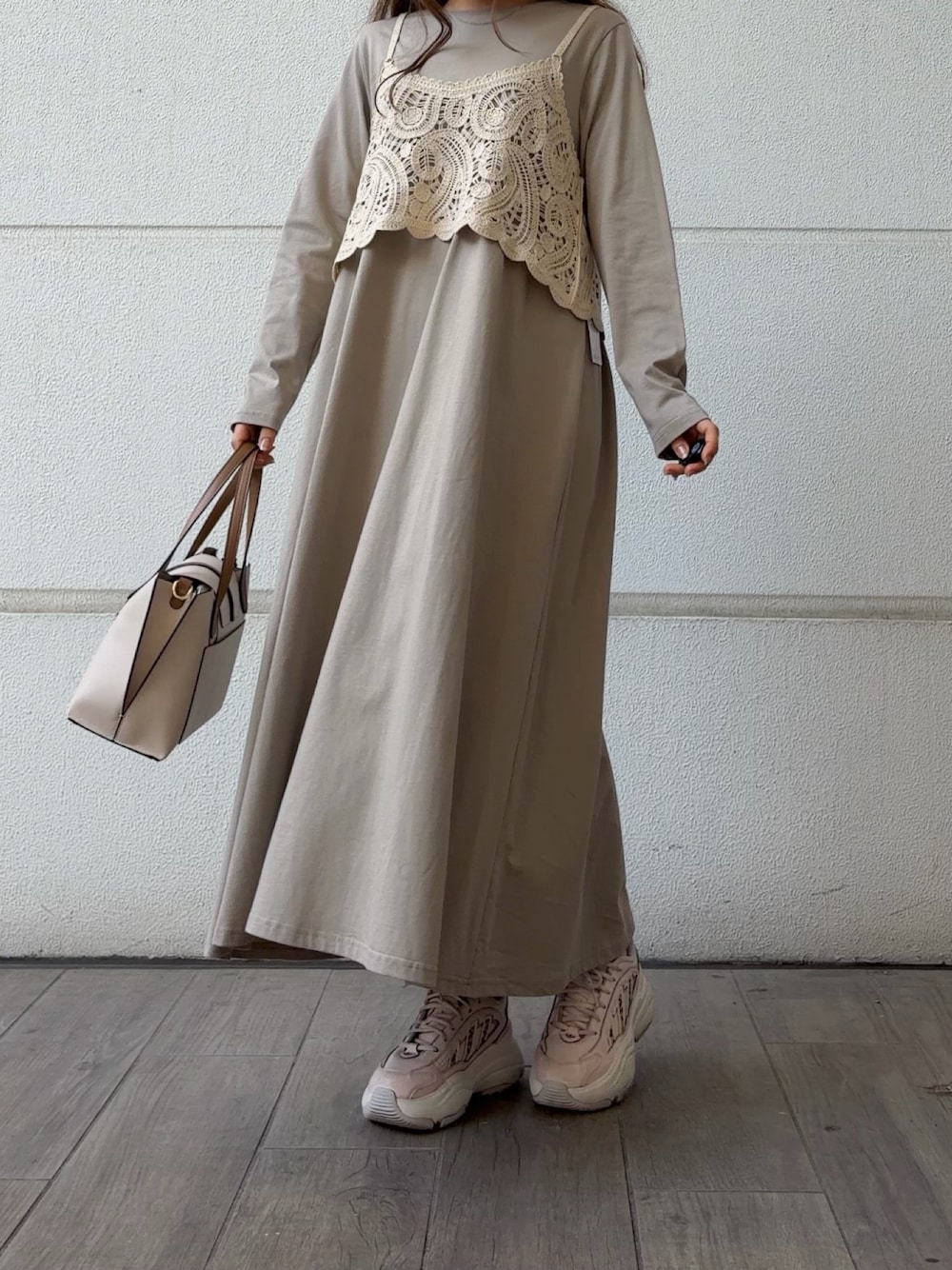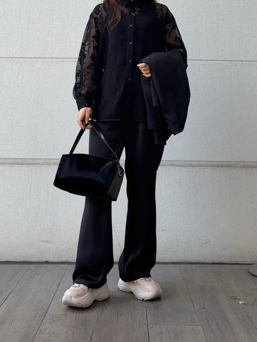 レースのインナーとサテンパンツで、重くなりすぎない軽やかさをプラスしました。