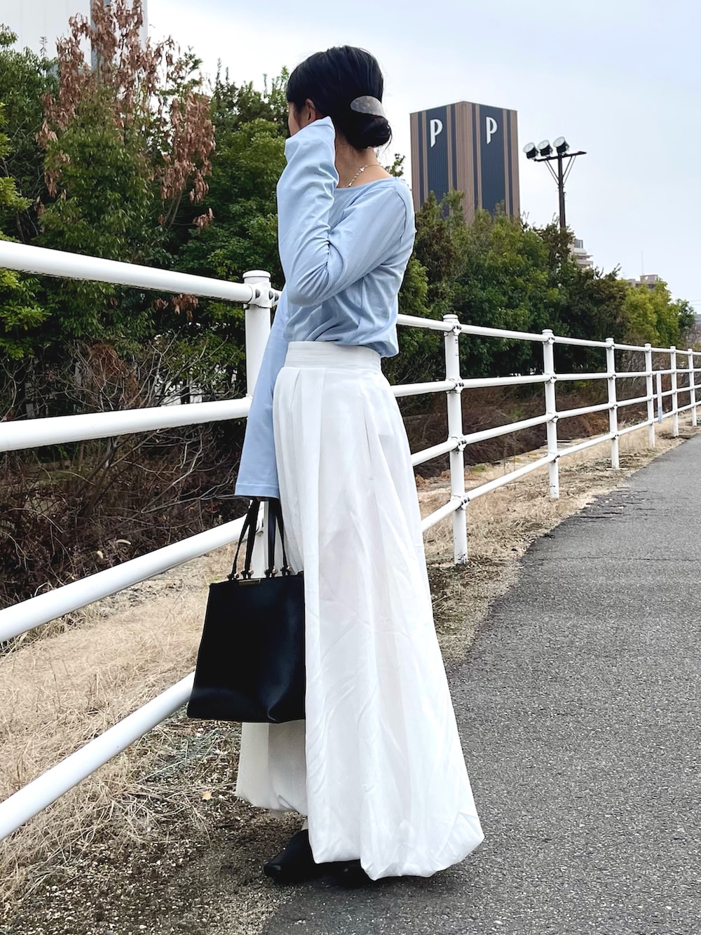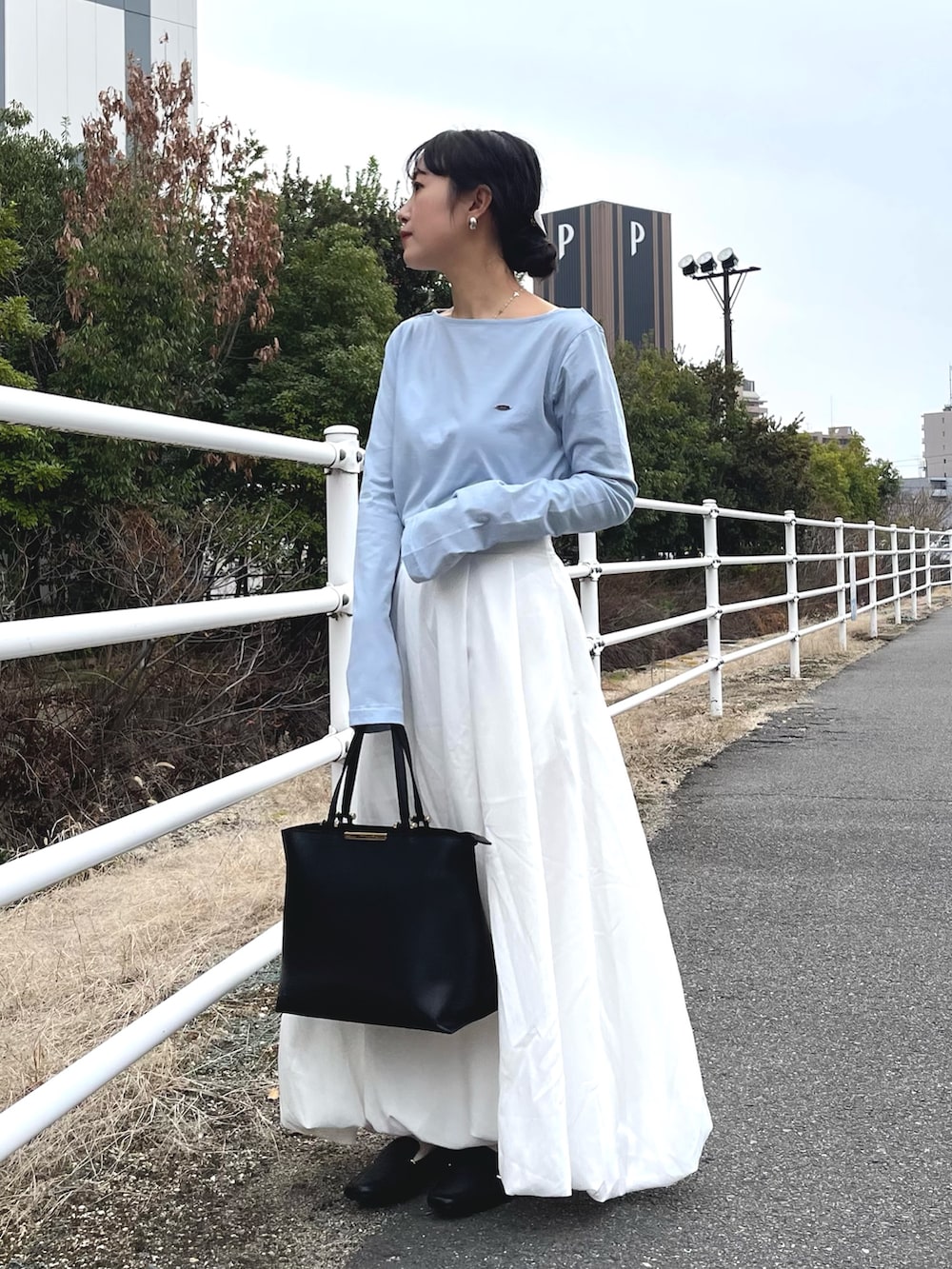 ワンポイントにブルーを入れた春服コーデ