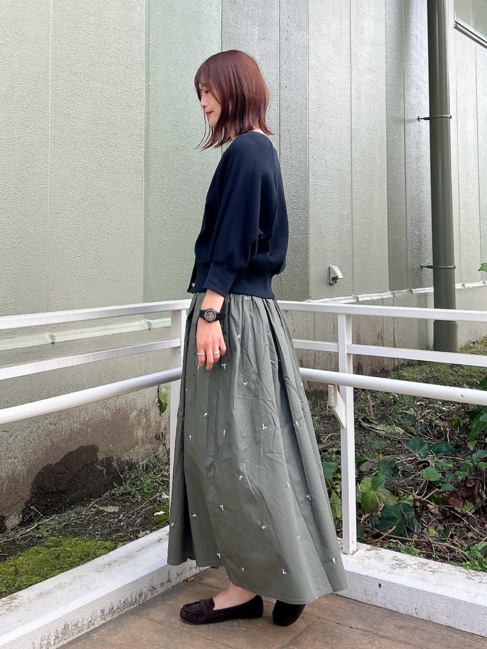ふんわり広がるシルエットで体型カバーもしつつ、動くたびに軽やかな印象に。