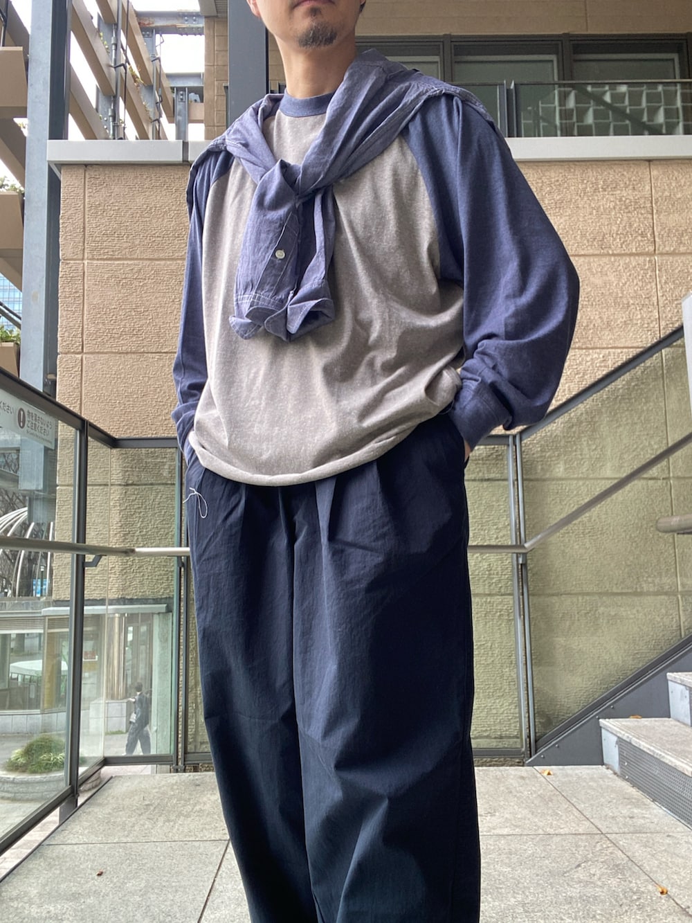 ベースボールTの従来であるディティールの配色のラグランスリーブやバインダーネック、裾のロック始末などのディティールは踏襲しつつ、袖口にはリブをつけ、