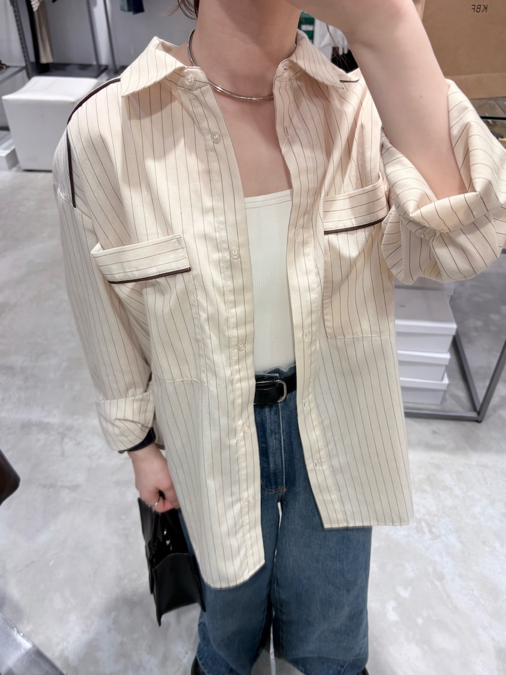パジャマルックのシャツなので、綺麗めに見えるようひ手首、デコルテは見せてあげる着方がオススメです✊🏻🔥