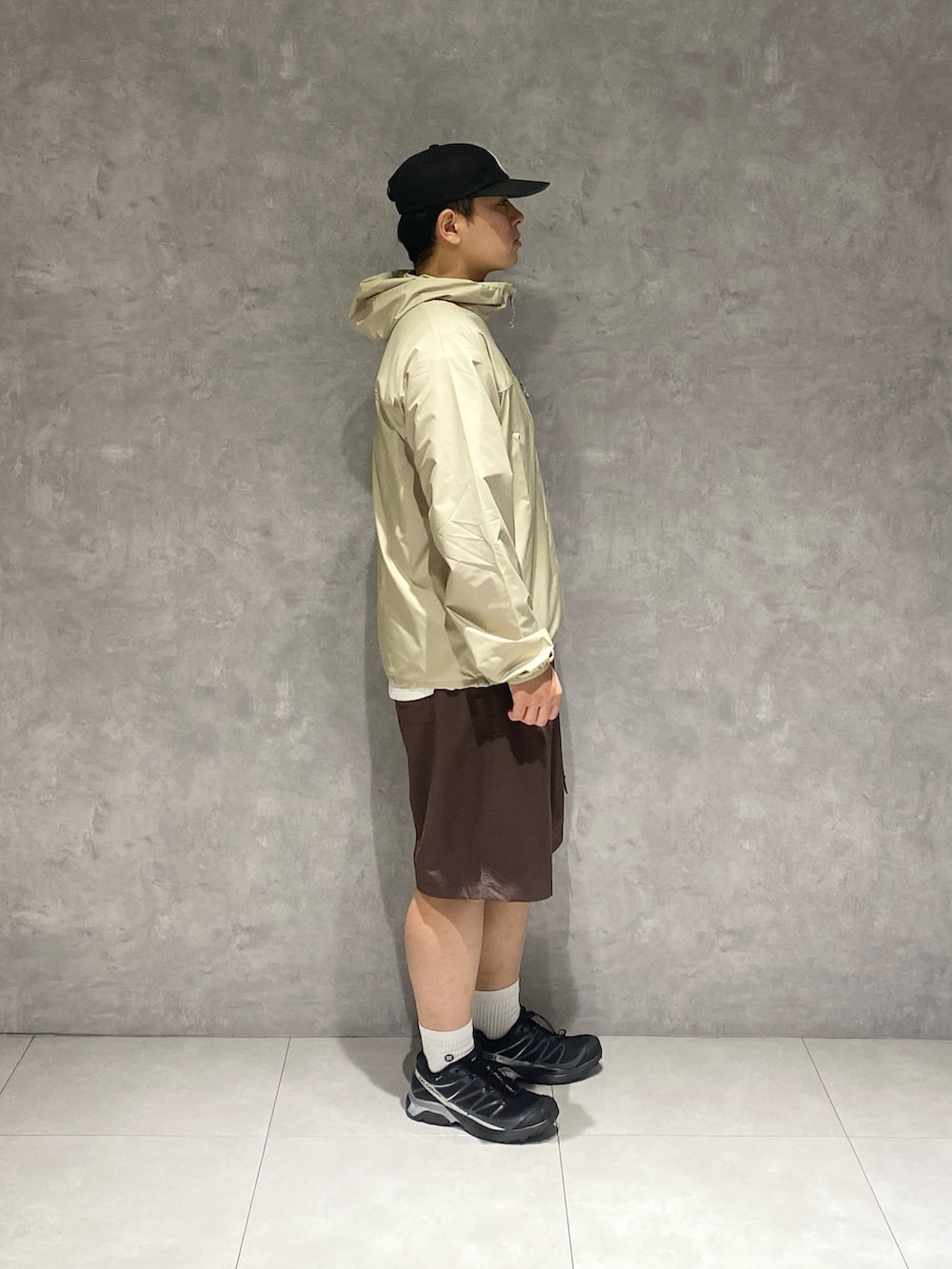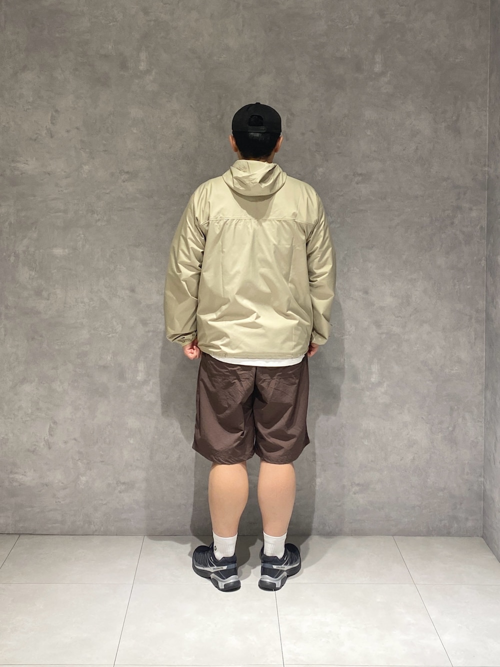 ナイロンパンツ×ナイロンジャケットでテック系の雰囲気を出しつつも色次第で柔らかい雰囲気を出すこともできます!
