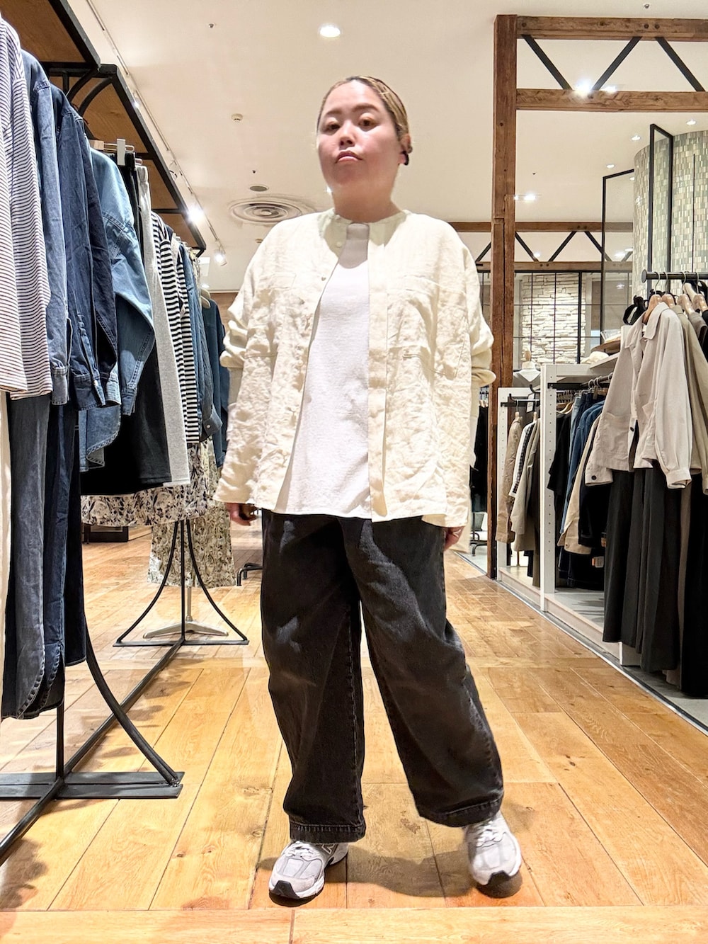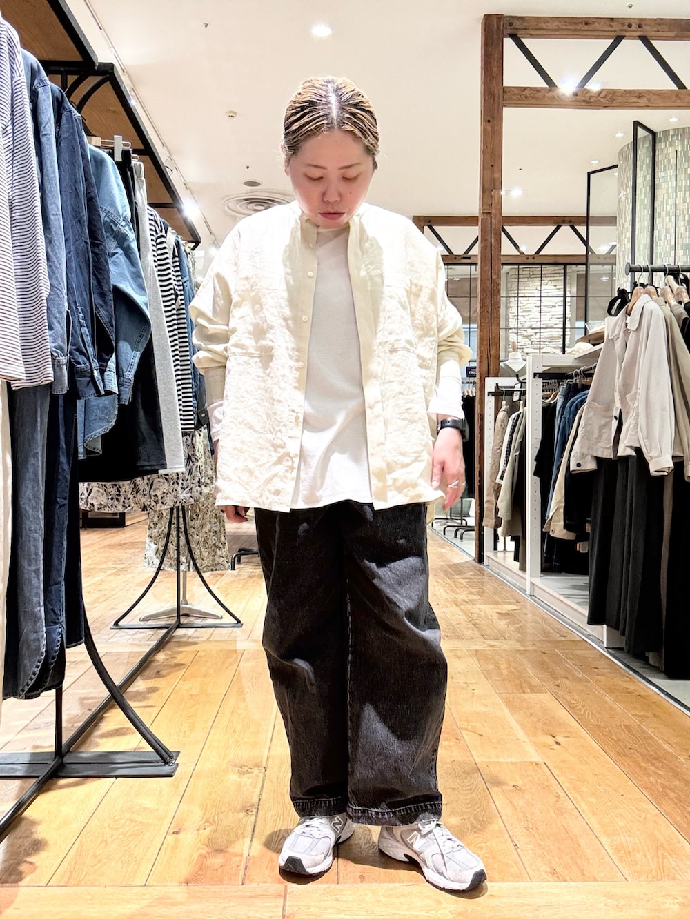 リネンのブラウスをレイヤード👏