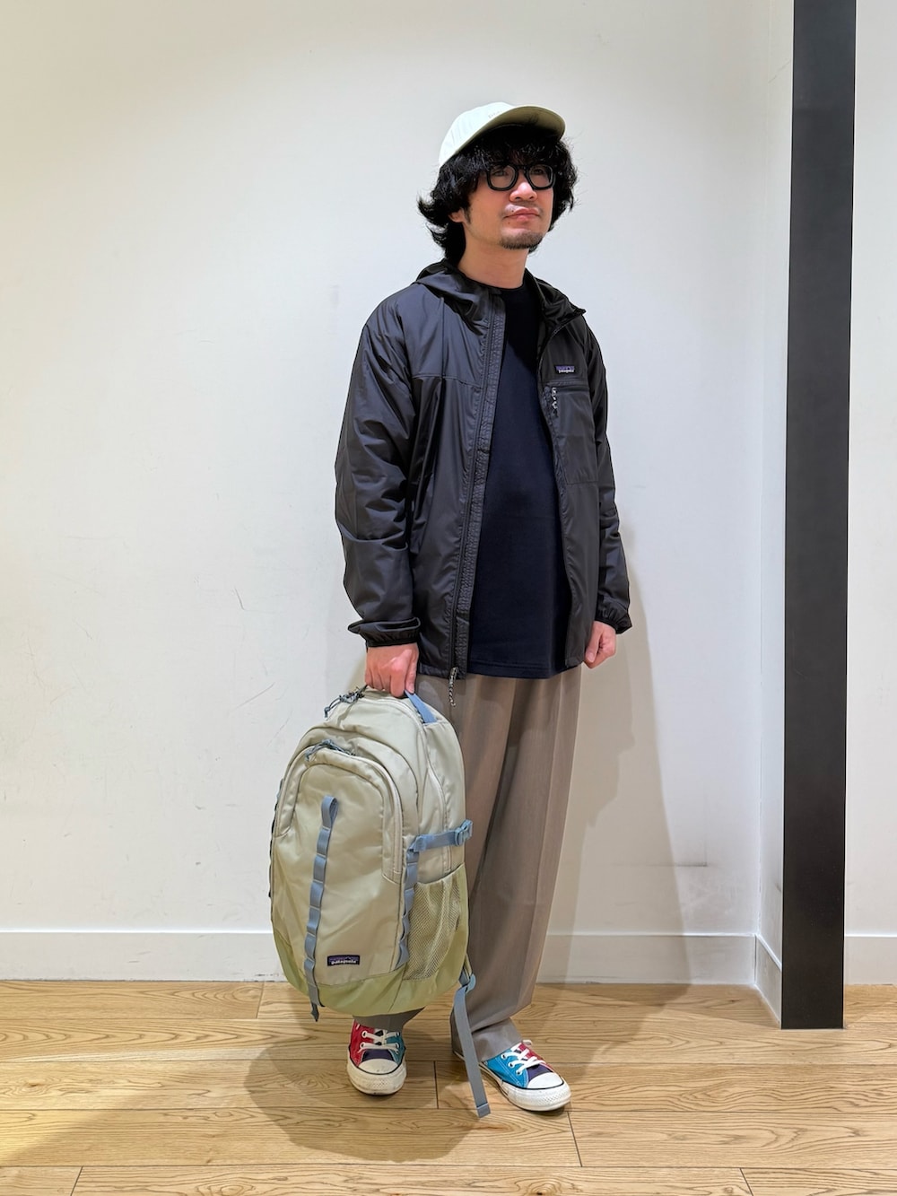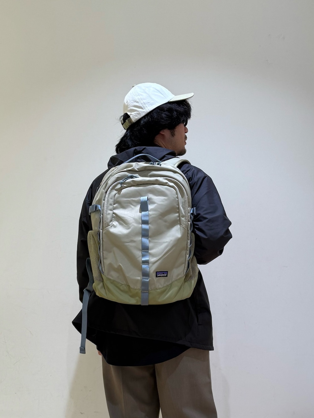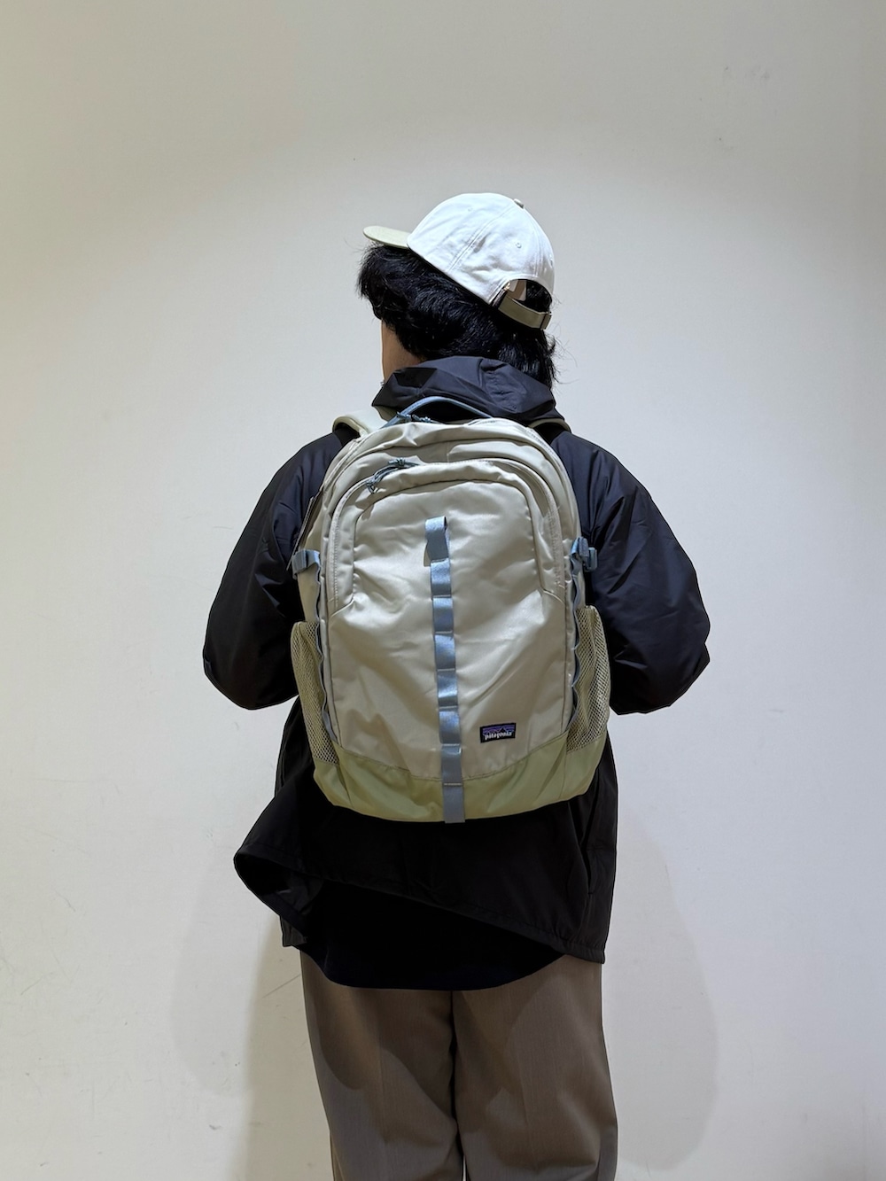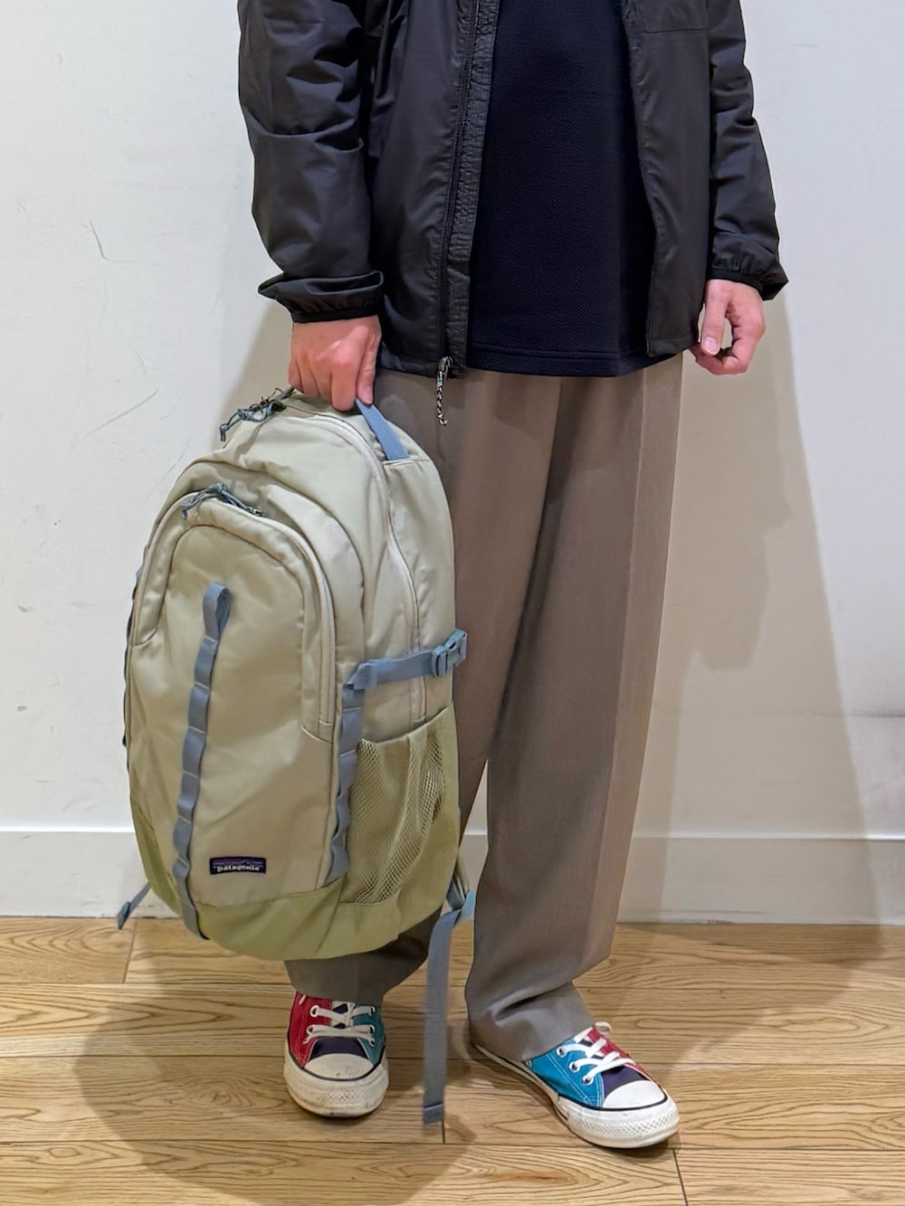patagoniaのバッグをメインにコーディネート。