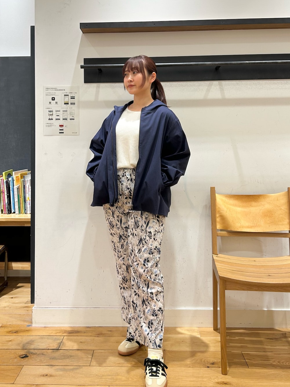 穿くだけで春らしいコーデになる、定番のフラワープリントのパンツ。長めに穿きたい方はMでもOKな丈です◎今年の花柄は淡い色や華奢なラインが特徴的なテキスタイルなので、大人でも花柄をコーデに取り入れやすいフェミニンさが嬉しいです✨