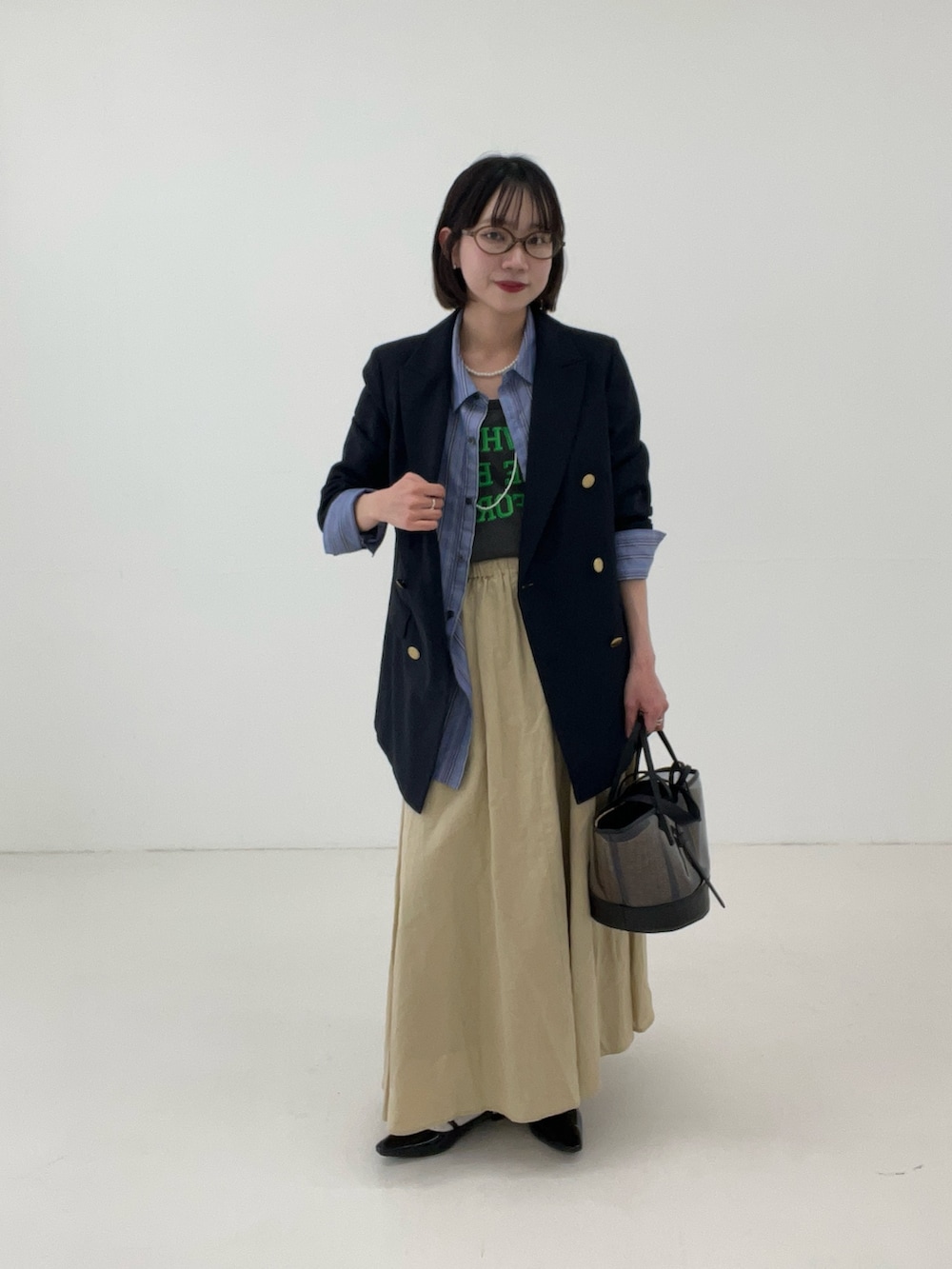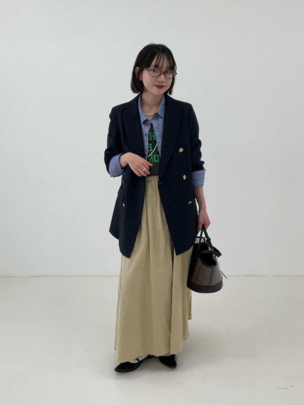 ベージュにカラー合わせが可愛い春のレイヤードスタイル☘️💙