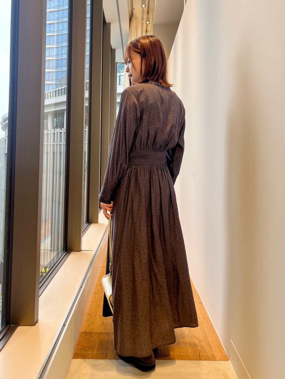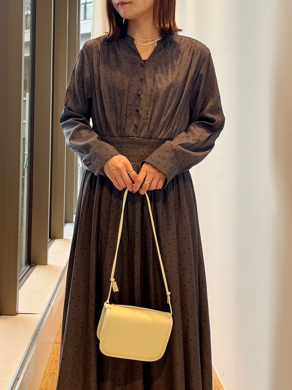 ウエストのシャーリングが自然にスタイルを良く見せてくれます。
