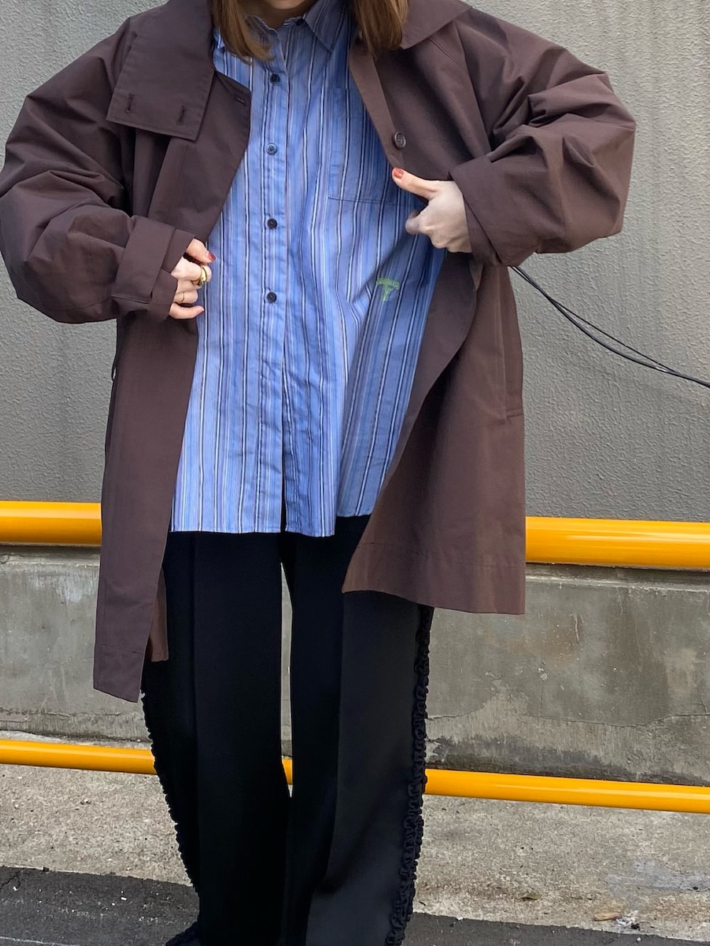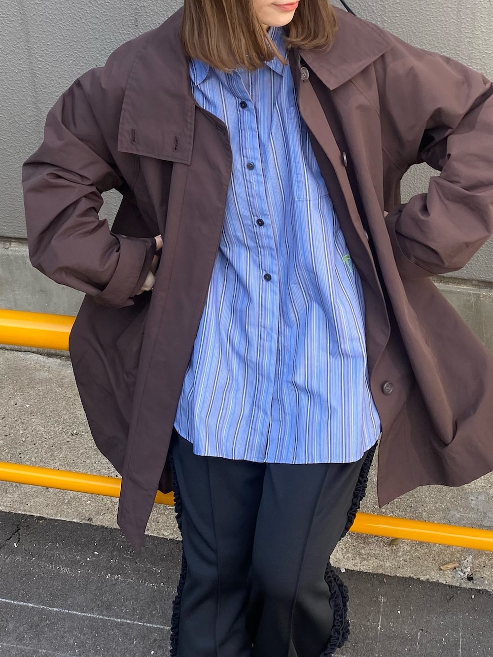 オーバーサイズの春アウターは、中にスウェット類でも余裕で着込めるので長いシーズン着回せるアイテムです