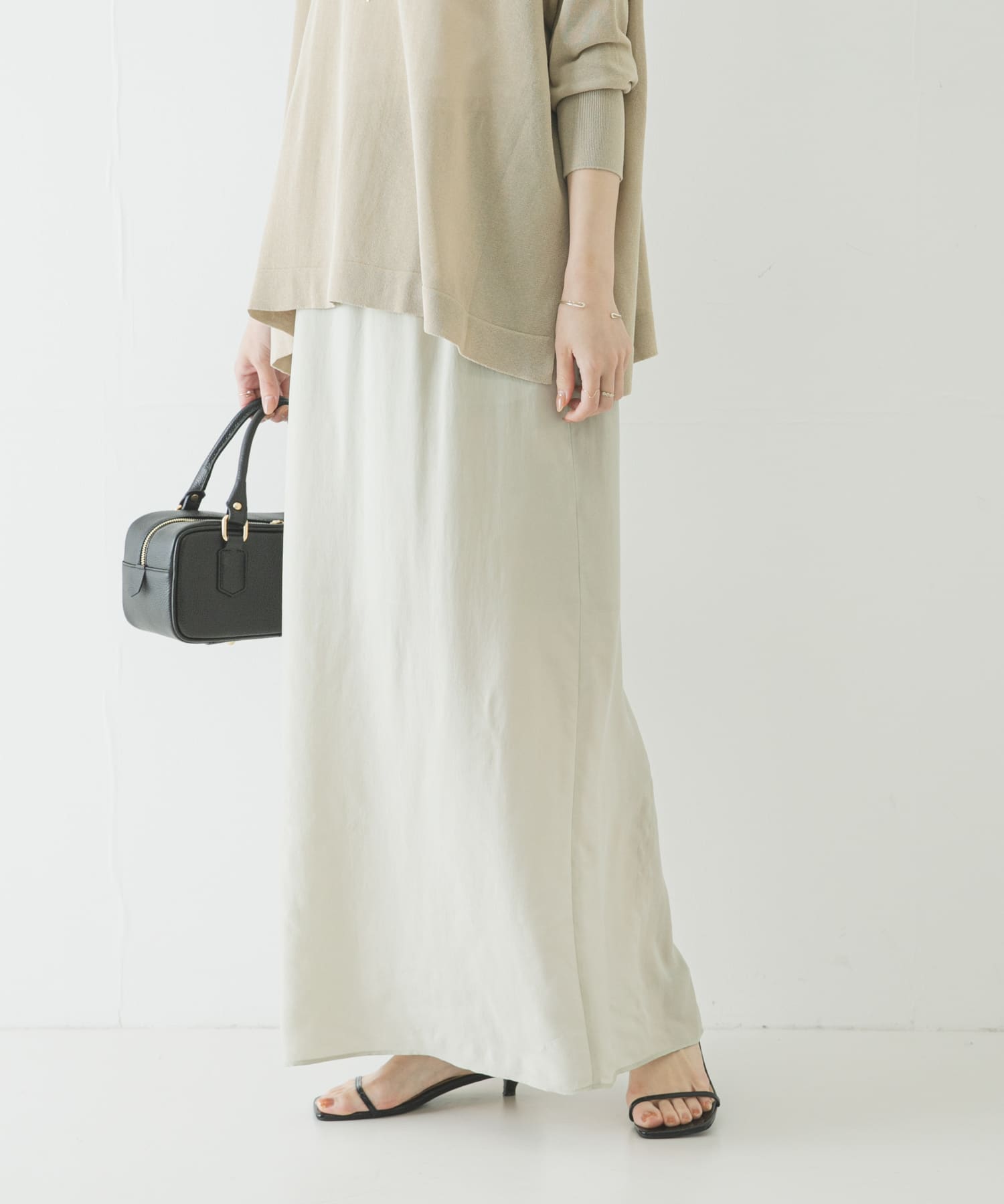 落ち感のあるスカートはシルエットがIラインでタイトすぎず、カジュアルなトップスとも合わせやすいです🫶