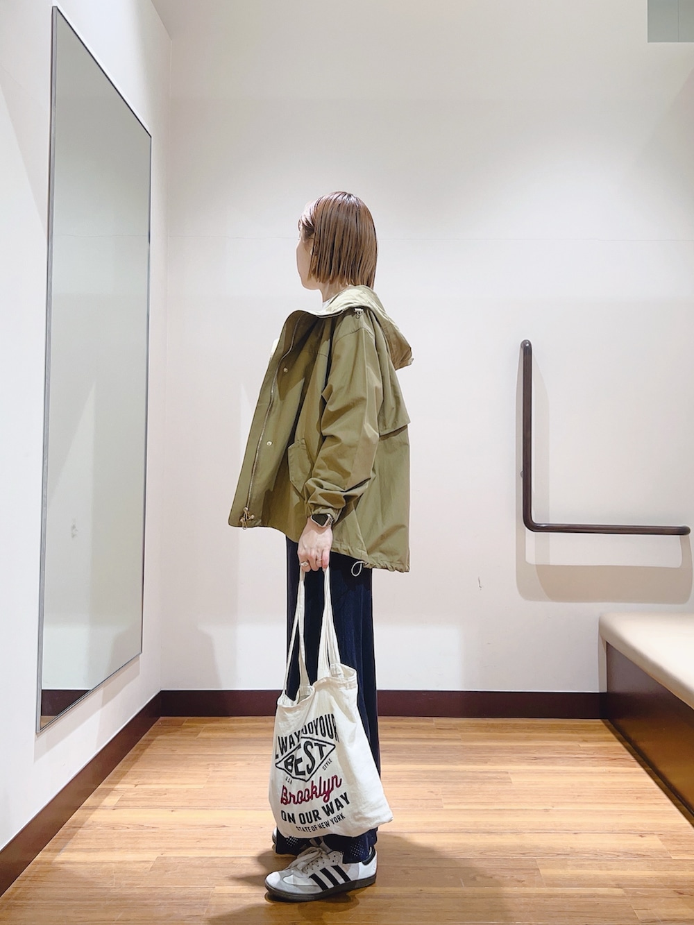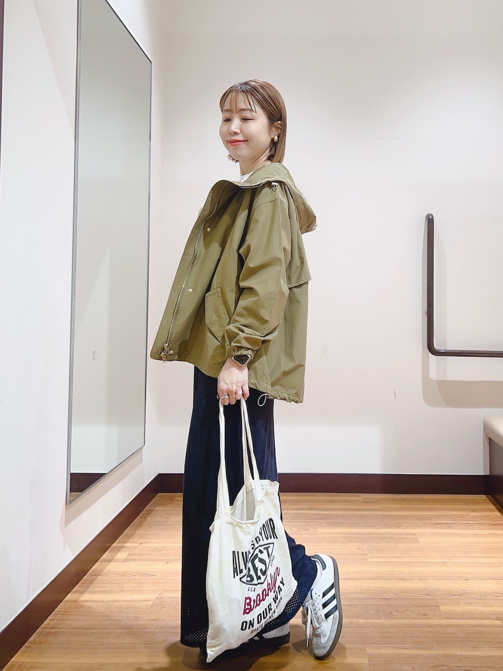 ドローコードで裾が絞れるので、シルエットも変えられます😊